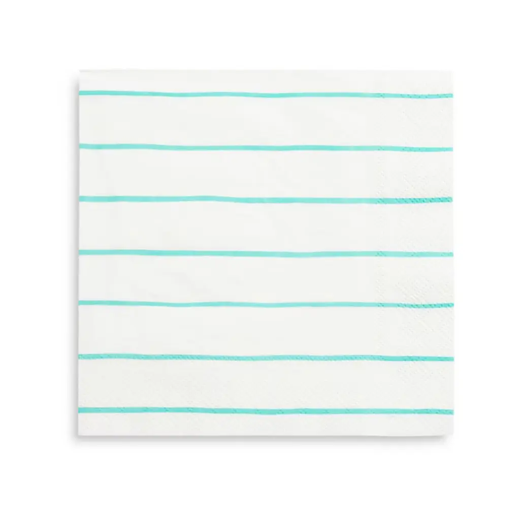 Daydream Society - Aqua Frenchie Striped Large Plates - Pack Of 8 Paper Plates