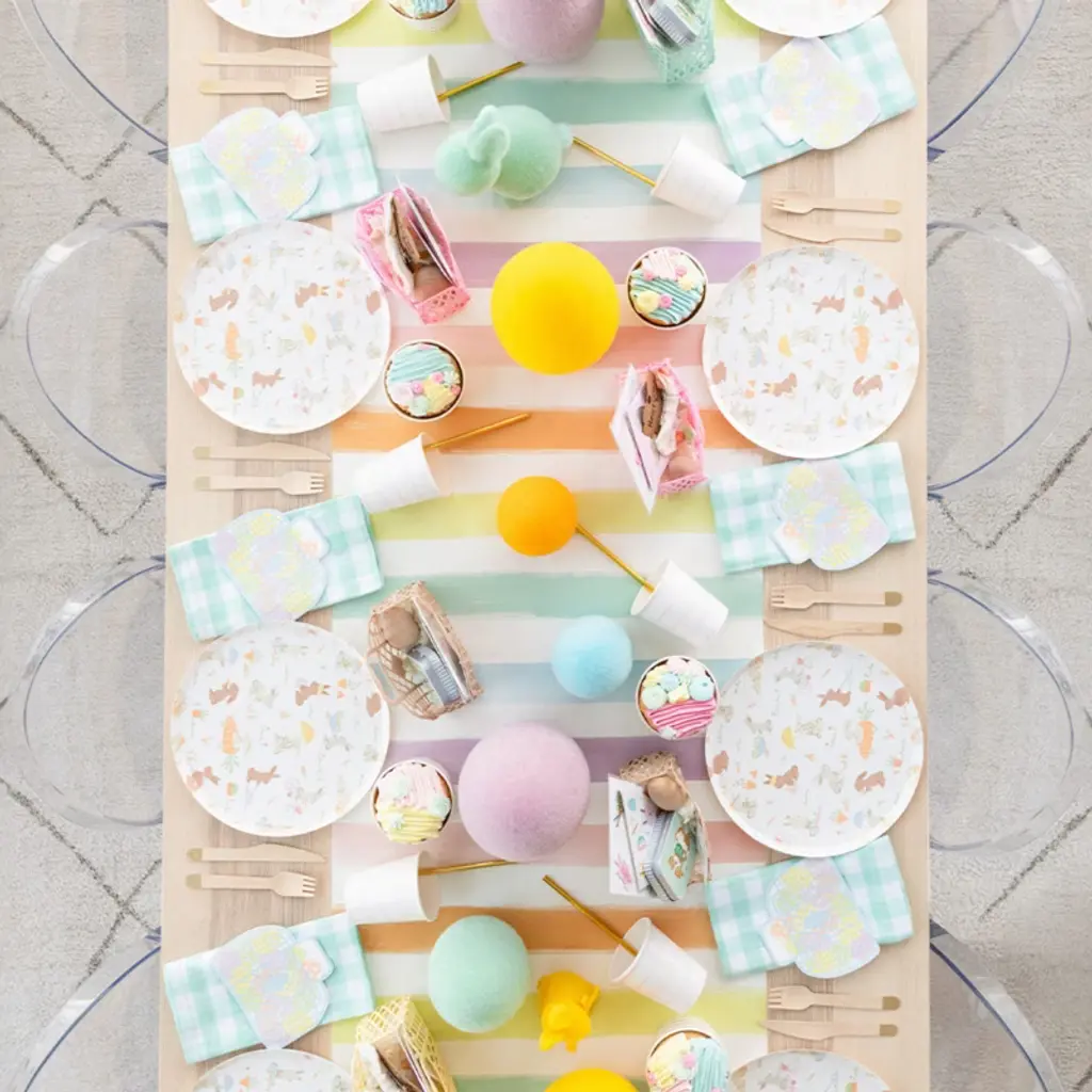 Hop on over to the garden! These large plates feature adorable bunnies tending to their carrot garden. Perfect for Easter celebrations and springtime gatherings. Add a touch of cuteness to your Spring table with these charming plates. Illustrated by Daydream Society Package contains 8 paper platesPlate measures 10" in diameterNot safe for microwave use