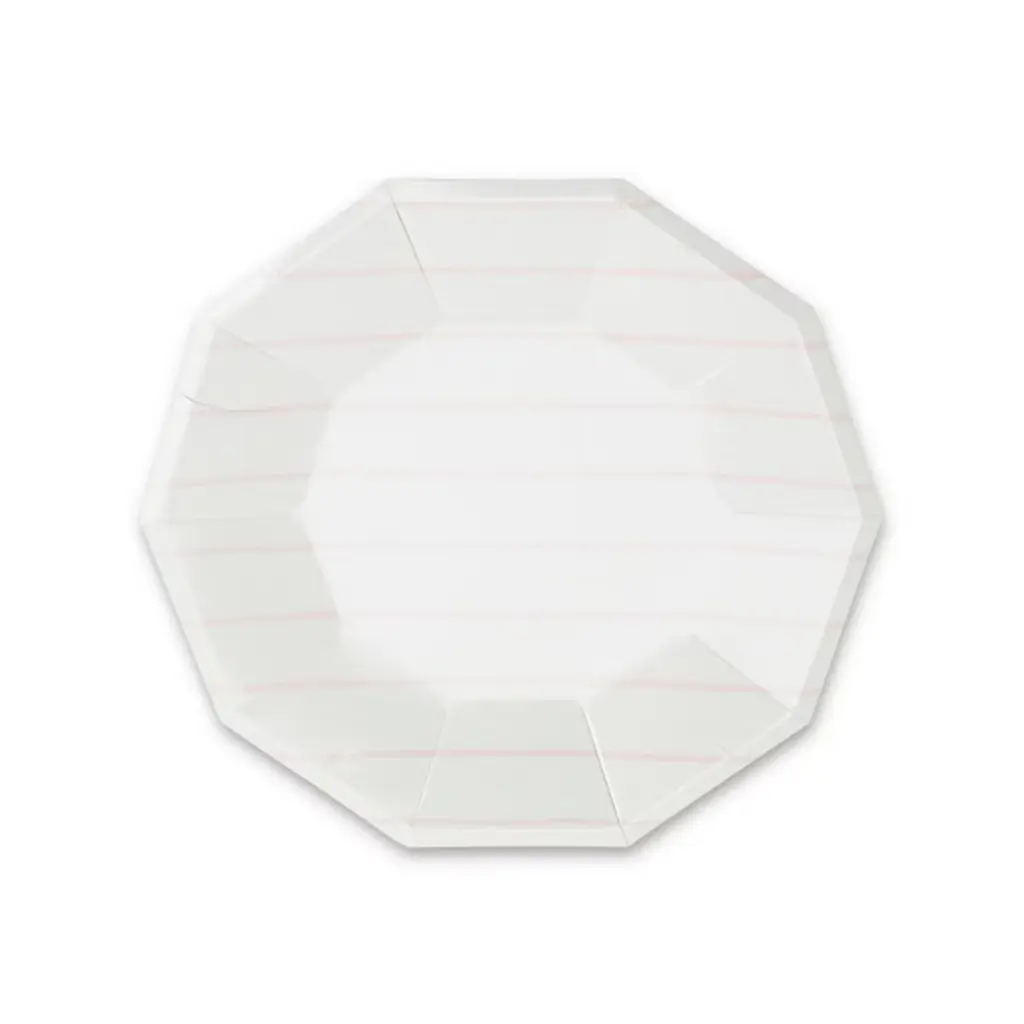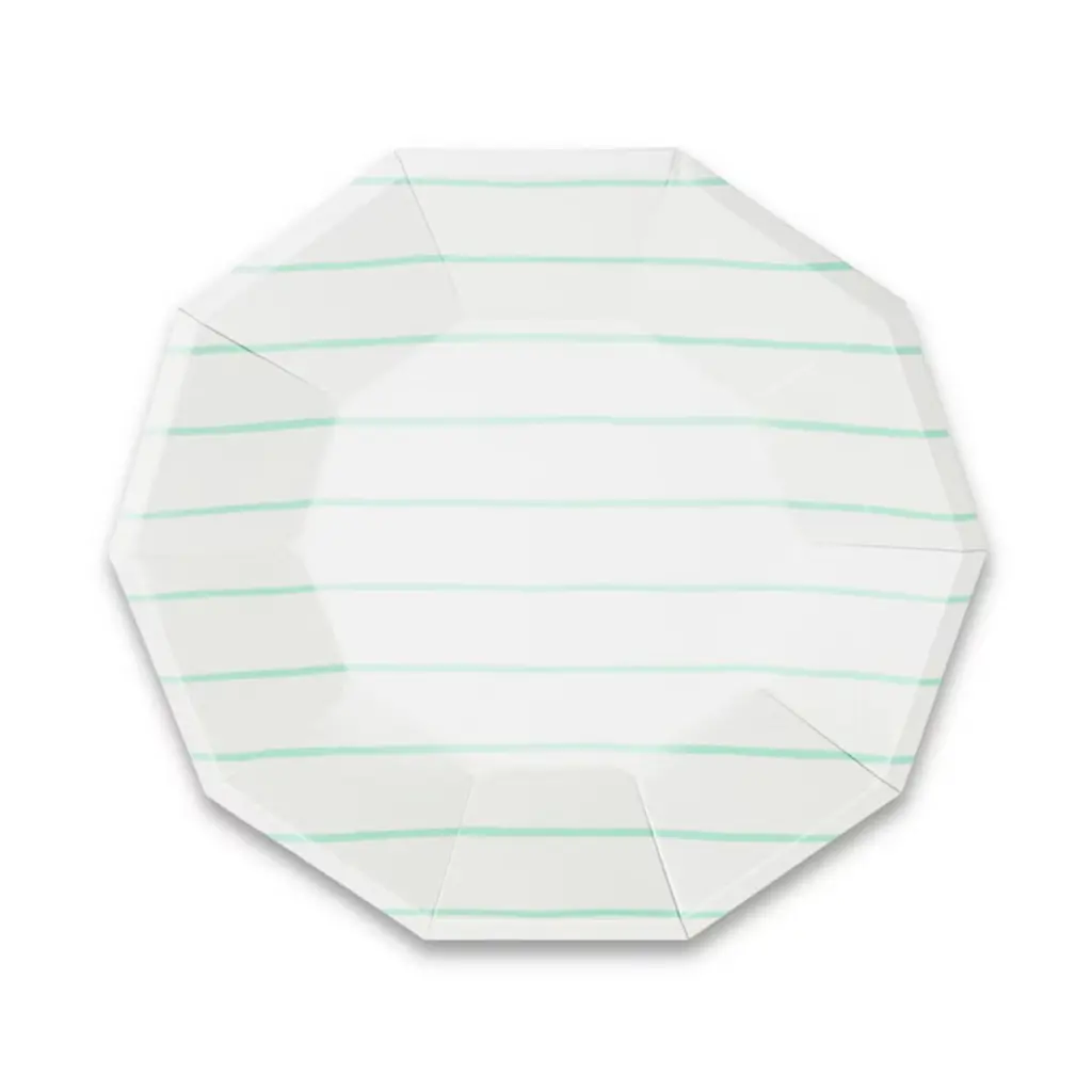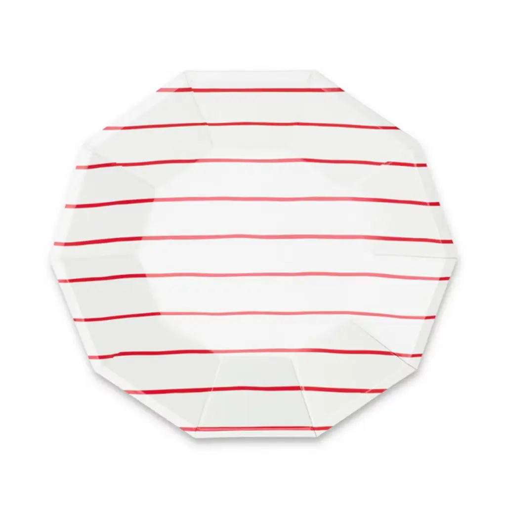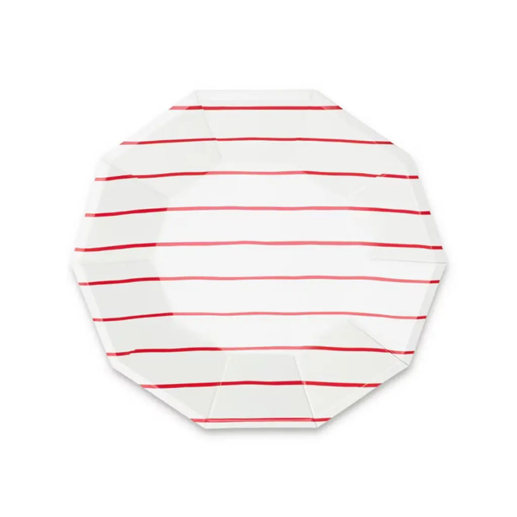 Ooh la la! Inspired by the iconic french breton stripe, these foil-pressed plates are anything but basic. Let them stand alone or mix and match with another pattern to create your own look! Package contains 8 paper platesEach plate measures approximately 7.5 inches from corner to cornerNot safe for microwave use
