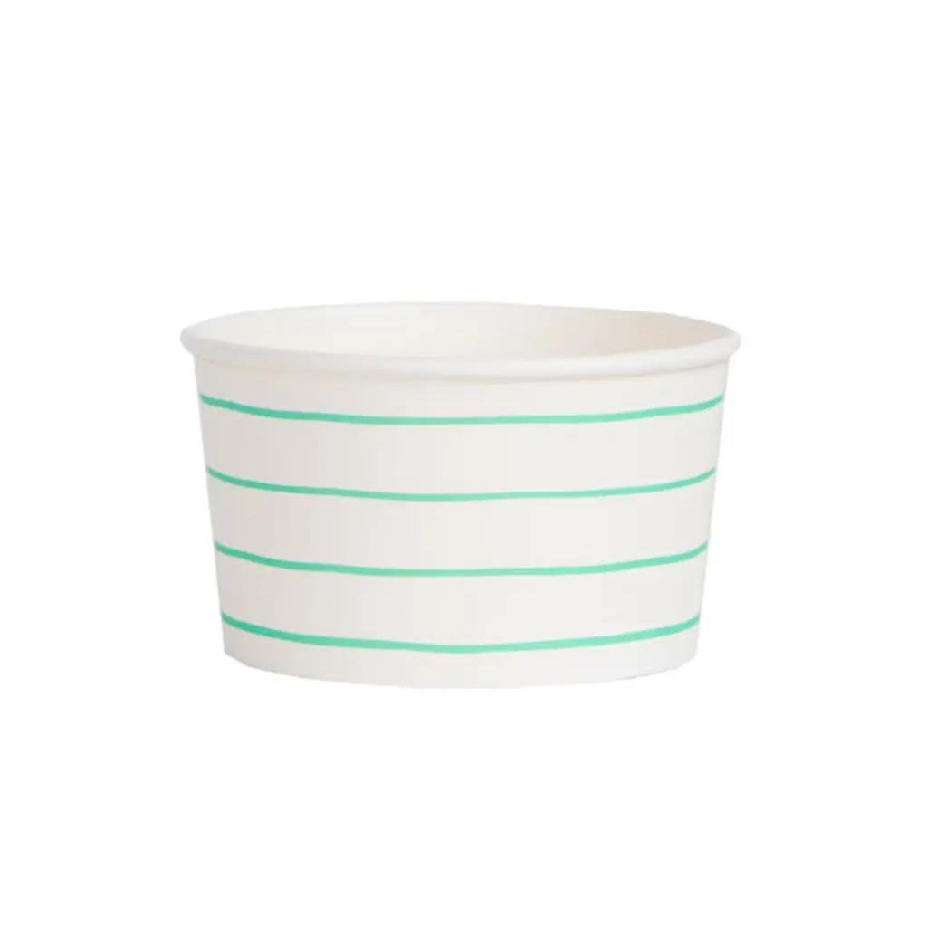 Ooh la la! Inspired by the iconic French Breton stripe, these striped paper treat cups are anything but basic. Let them stand alone or mix and match with another pattern to create your own stylish party look! Perfect for snacks, ice cream, and other treats! Packagae contains 8 treat cups Each cup is approximately 6 oz. capacity Food safe Not safe for microwave use
