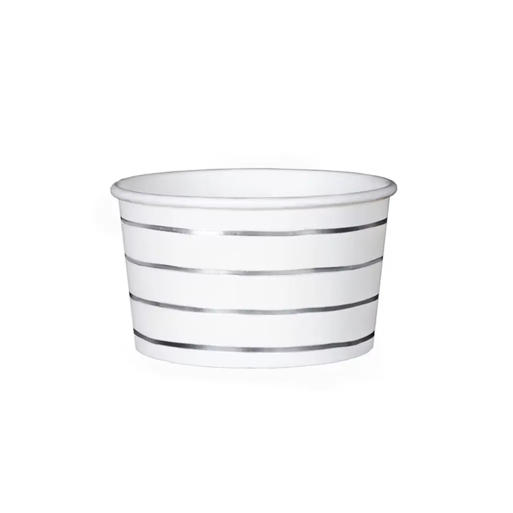 Ooh la la! Inspired by the iconic French Breton stripe, these striped paper treat cups are anything but basic. Let them stand alone or mix and match with another pattern to create your own stylish party look! Perfect for snacks, ice cream, and other treats! Packagae contains 8 treat cups Each cup is approximately 6 oz. capacity Food safe Not safe for microwave use