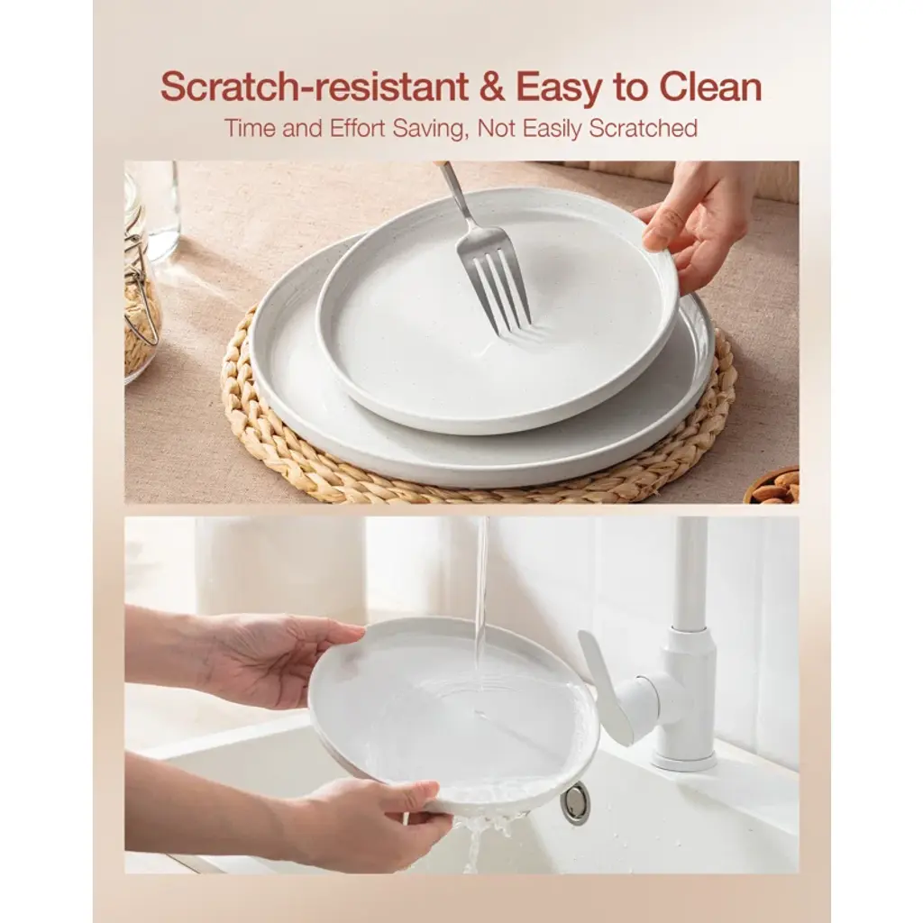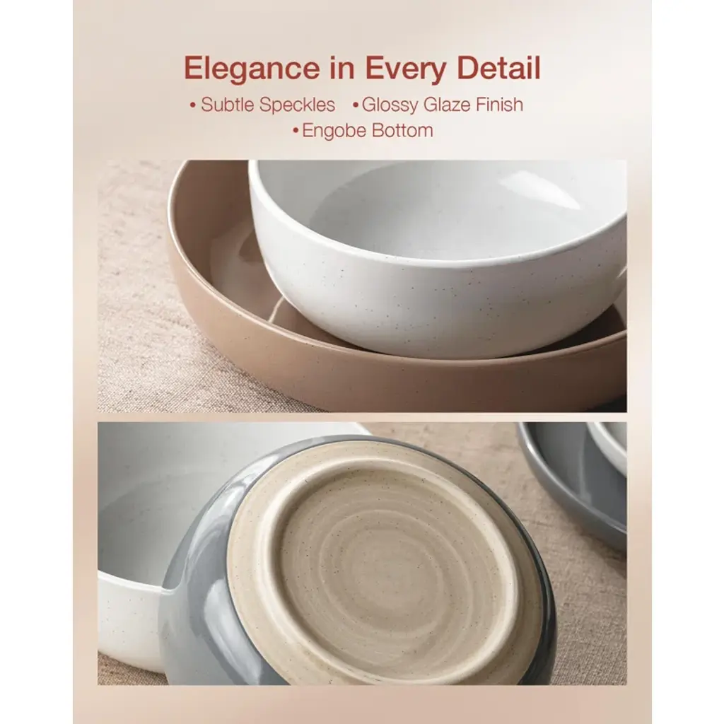 Whether you're renovating a new home or need to replace old dish sets, this plates and bowls set is an option not to be missed. These rounded dishes feature a minimalist design and use a fun handmade speckled design and 100% lead-free glaze to make a difference to dull tableware. This dish sets service for 4 and includes dinner plates, salad plates, and cereal bowls. Whether it's a night in enjoying dinner with the family or a household event with guests, the dinnerware set is the best choice everyone will love.