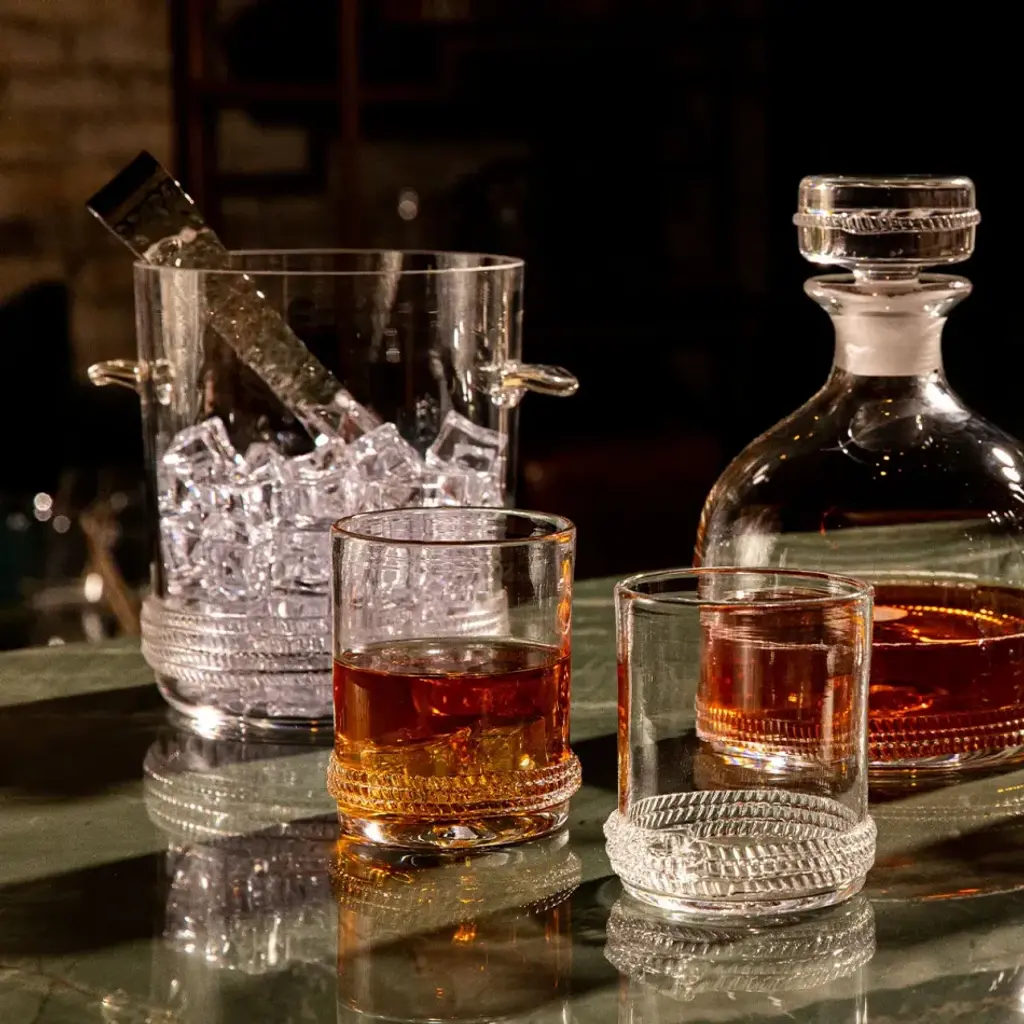 From our Dean Collection - Our handsome, mouth blown glass is grounded with a subtle glass rope base in this beautiful ice bucket and tongs is particularly perfect when brimming with ice cold bubbly. Based in Connecticut, Juliska is committed to bringing elegant European design into our modern homes. Since its founding in 2001, when David and Capucine Gooding began by working with artisans outside of Prague to reproduce antique Bohemian glass pieces, every piece from Juliska has shared a rich heritage spanning six centuries of European design. Juliska's creations are timeless, romantic and effortlessly chic.