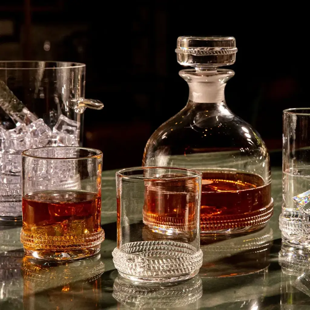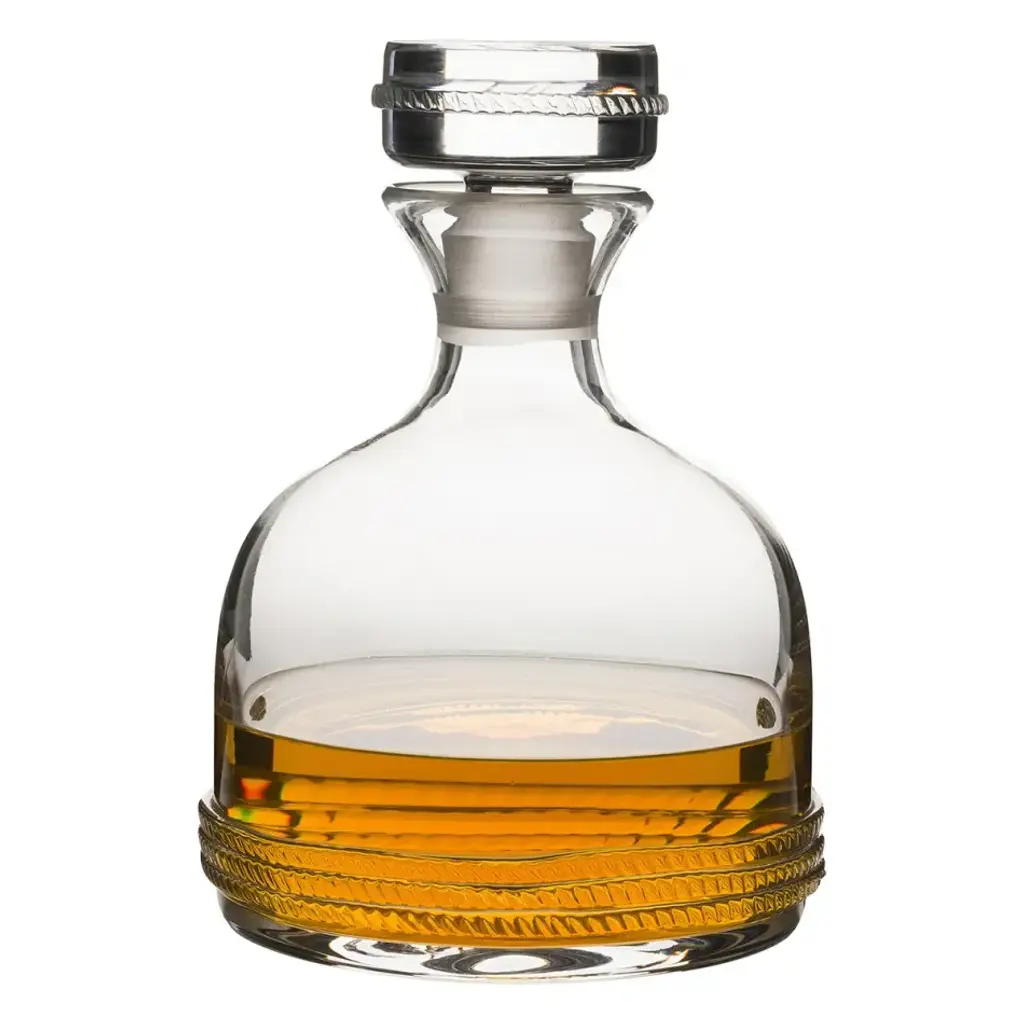 From our Dean Collection - Understated and quite handsome, this decanter in mouth blown glass grounded with subtle rope base makes a lovely gentleman's gift. Based in Connecticut, Juliska is committed to bringing elegant European design into our modern homes. Since its founding in 2001, when David and Capucine Gooding began by working with artisans outside of Prague to reproduce antique Bohemian glass pieces, every piece from Juliska has shared a rich heritage spanning six centuries of European design. Juliska's creations are timeless, romantic and effortlessly chic.