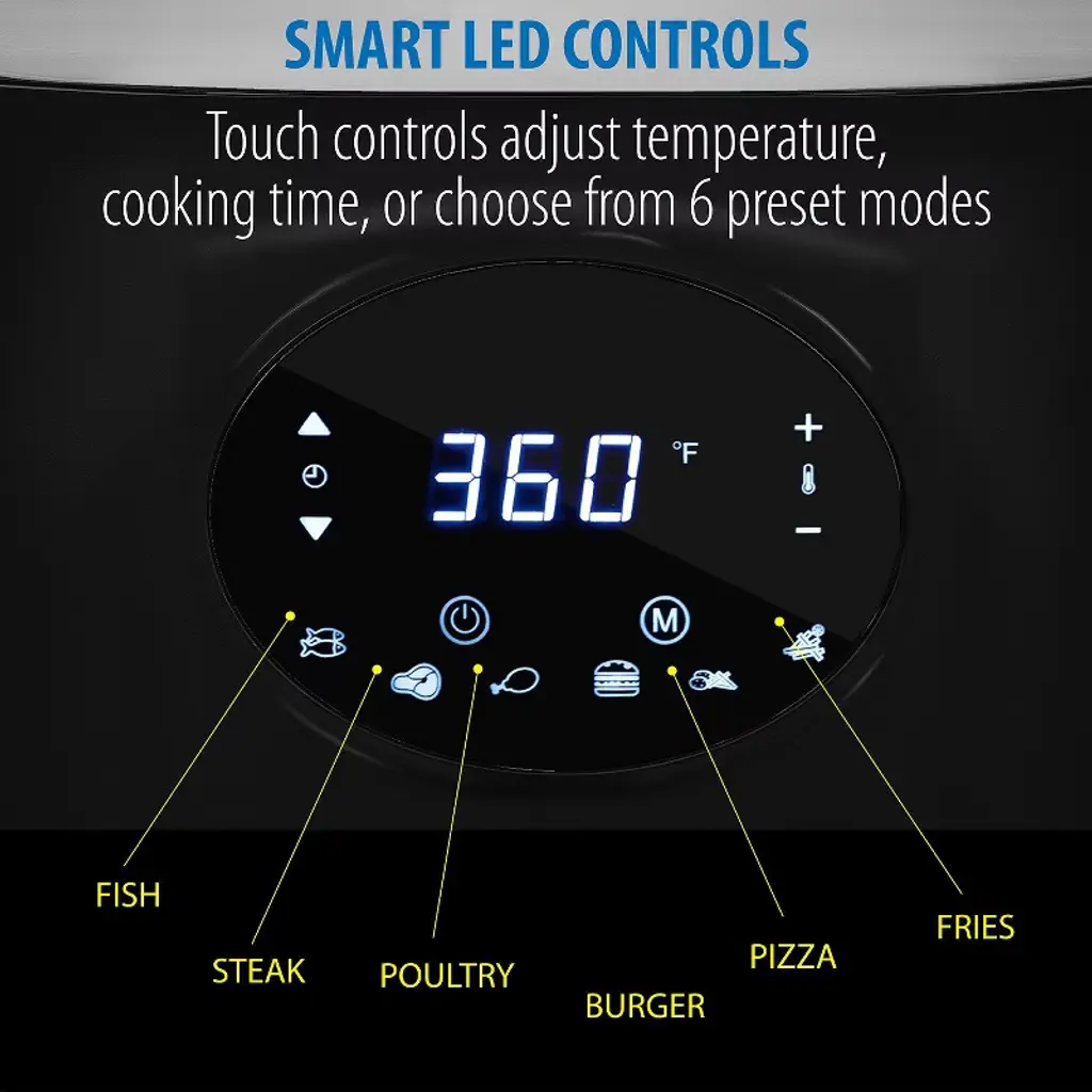 Deco Chef Xl 3.7 Qt Digital Air Fryer W/ 7 Smart Programs, Led Touch Screen, Oil-less Non-stick Basket & Recipes