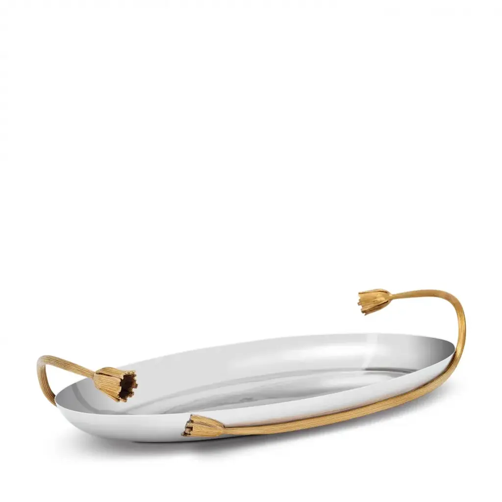 Recalling the grand serving traditions of the early 20th century, the Deco Leaves collection is a richly textured marriage of handcrafted stainless steel and 24K gold-plated accents. Prior to founding L’Objet in 2004, Israeli-born Elad Yifrach was a successful designer in Beverly Hills. He was creating beautiful interiors, but he was frustrated by the limited options available in home accessories, so he set out to create something better. L’Objet’s collections are diverse, but they are almost always inspired by nature and architecture. Many of his exquisite serving pieces rest in a base of hand-crafted gold foliage, other pieces feature intricate design and beadwork, and some of the most striking objects actually look like miniature buildings. And despite the lux feel, much of the line is practical with just a touch of whimsy.