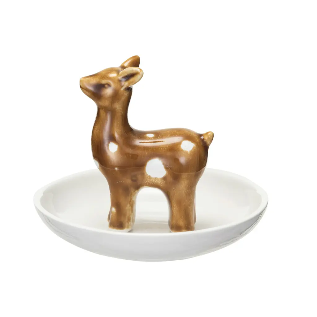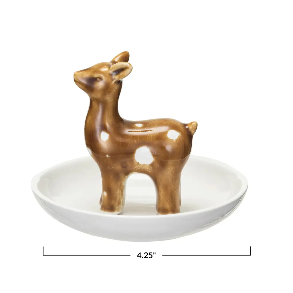 This decorative stoneware dish with deer and reactive glaze in white and brown is a cute and cozy piece that will enhance the home decor. The dish features a white and brown color that adds some contrast and elegance to any space. The dish also features a deer design that adds some charm and character, creating a stunning and unique display. The dish is made of sturdy and durable stoneware with a reactive glaze that creates a unique and glossy finish. Each one will vary slightly. The dish is ideal for serving snacks, candies, or displaying jewelry, coins, or other small items. It is a lovely and versatile piece that can add some charm and warmth to any decor style or occasion. The dish measures 4.25 inches in diameter. This piece is a great way to wow or indulge anyone.Features: