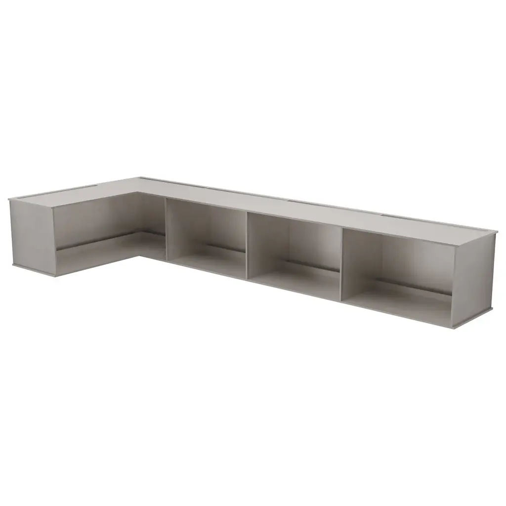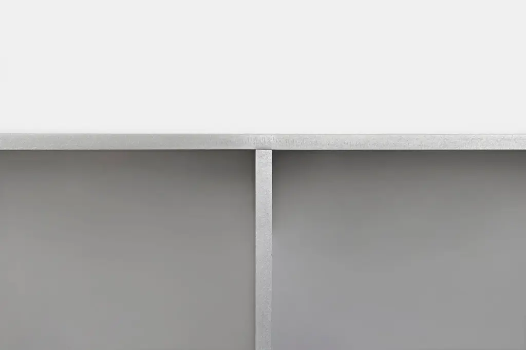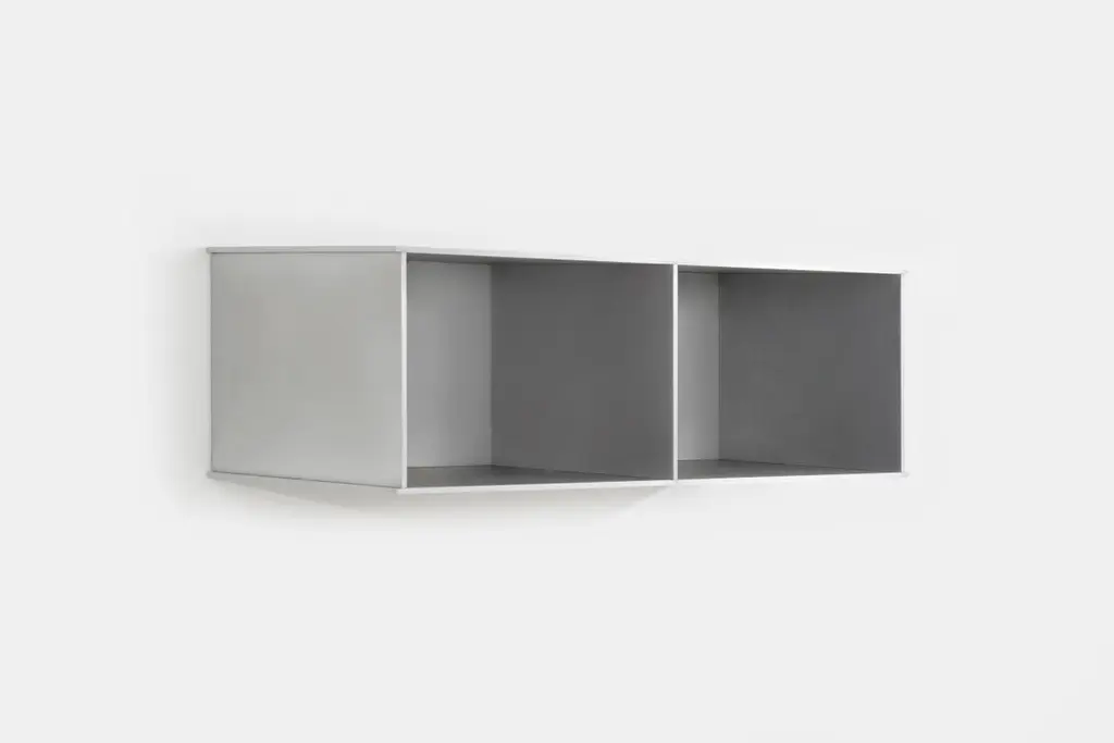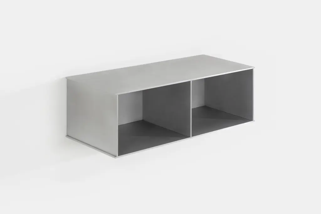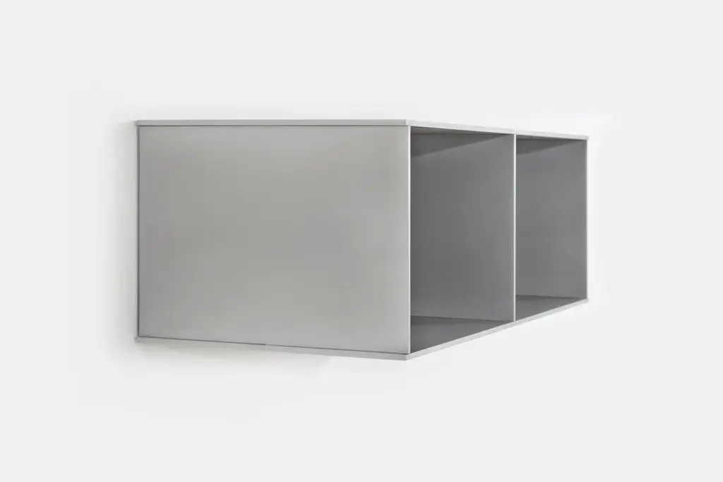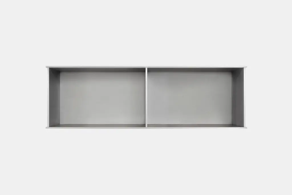The Minimalist wall-mounted, 30" wide, deep 2G shelf is sculpted out of 1/4 inch thick, wax-polished aluminum. Each shelf has an inset welded U-channel that spans the length of the shelf and easily mounts on included custom-bent steel Z-clips. Each bay of this modernist shelf is proportioned to the golden ratio and can the scale can be customized to match these proportions. The shelf is customizable based on these proportions and can be in 2, 3, 4, 5, 6, 7 and 8 bays. Finish samples, available upon request.
