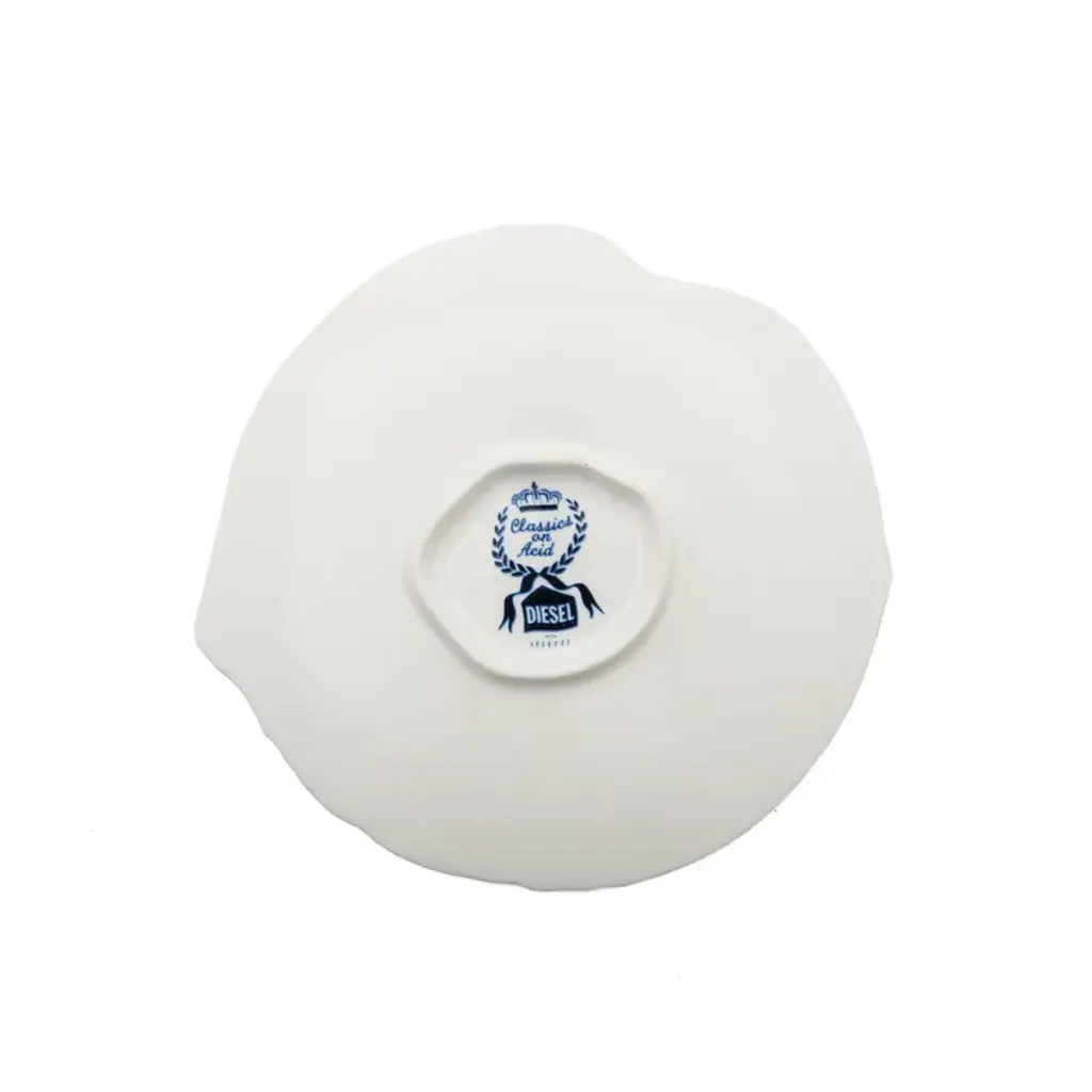 Porcelain Dinner plate. A classic look with a crazy twist for party lovers and eclectics.Beautiful on the wall, marvelous for an unexpected distorted table set up.