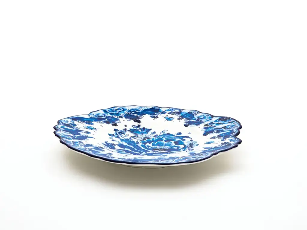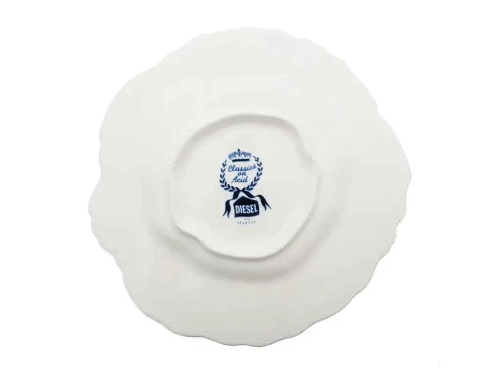 Porcelain Dinner plate. A classic look with a crazy twist for party lovers and eclectics.Beautiful on the wall, marvelous for an unexpected distorted table set up.