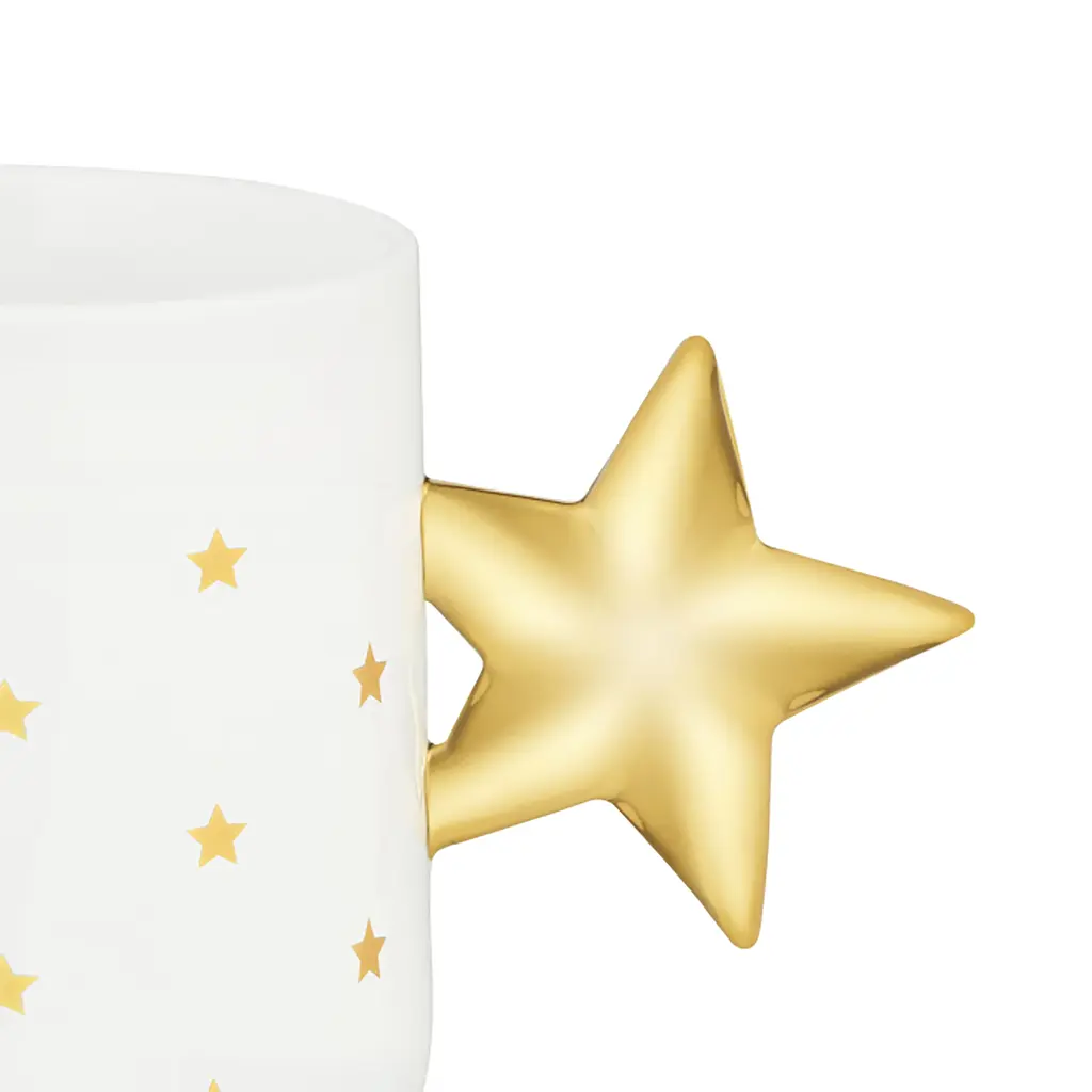 Greet Christmas with the Alessi Delight Mug that captures the festive spirit with a playful star pattern. Designed by Nika Zupanc, this charming mug is part of a collection that draws inspiration from traditional Christmas colors and iconography. Bright gold stars shine on the white porcelain, giving a nod to one of the most easily recognizable festive symbols. Quirky and fun, the handle is shaped like a large star that seems to pierce the surface of the mug. Every Alessi Delight Mug is made from white porcelain with hand-applied decorations. Perfect for the festive season, this mug is also ideal to brighten your mornings throughout the year.