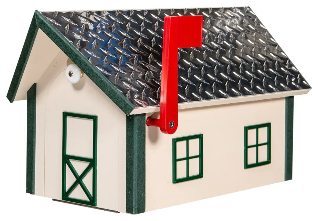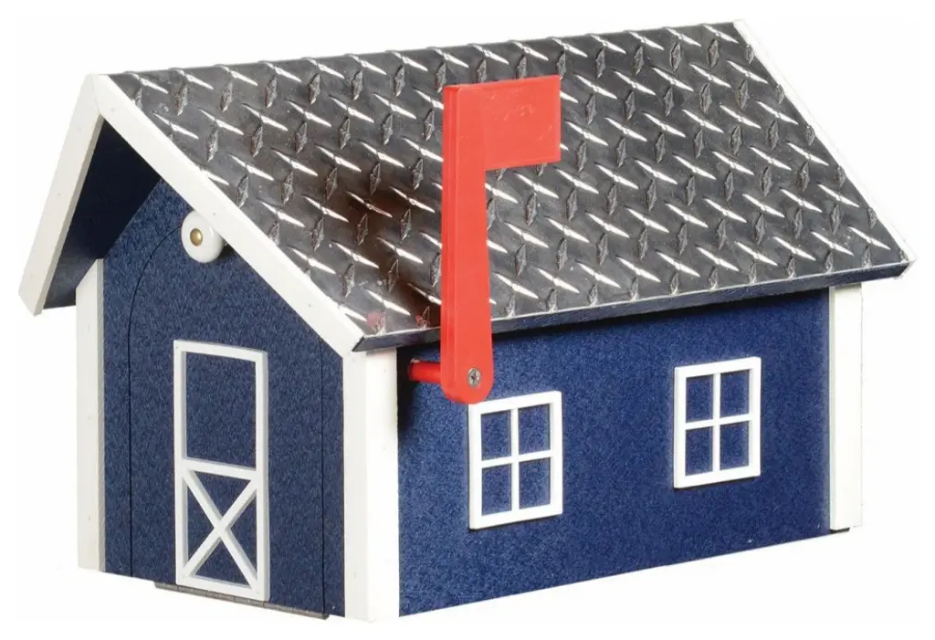 Deluxe Mailbox, White & Bright Blue, Aluminum Diamond Plate Roof, Poly Lumber