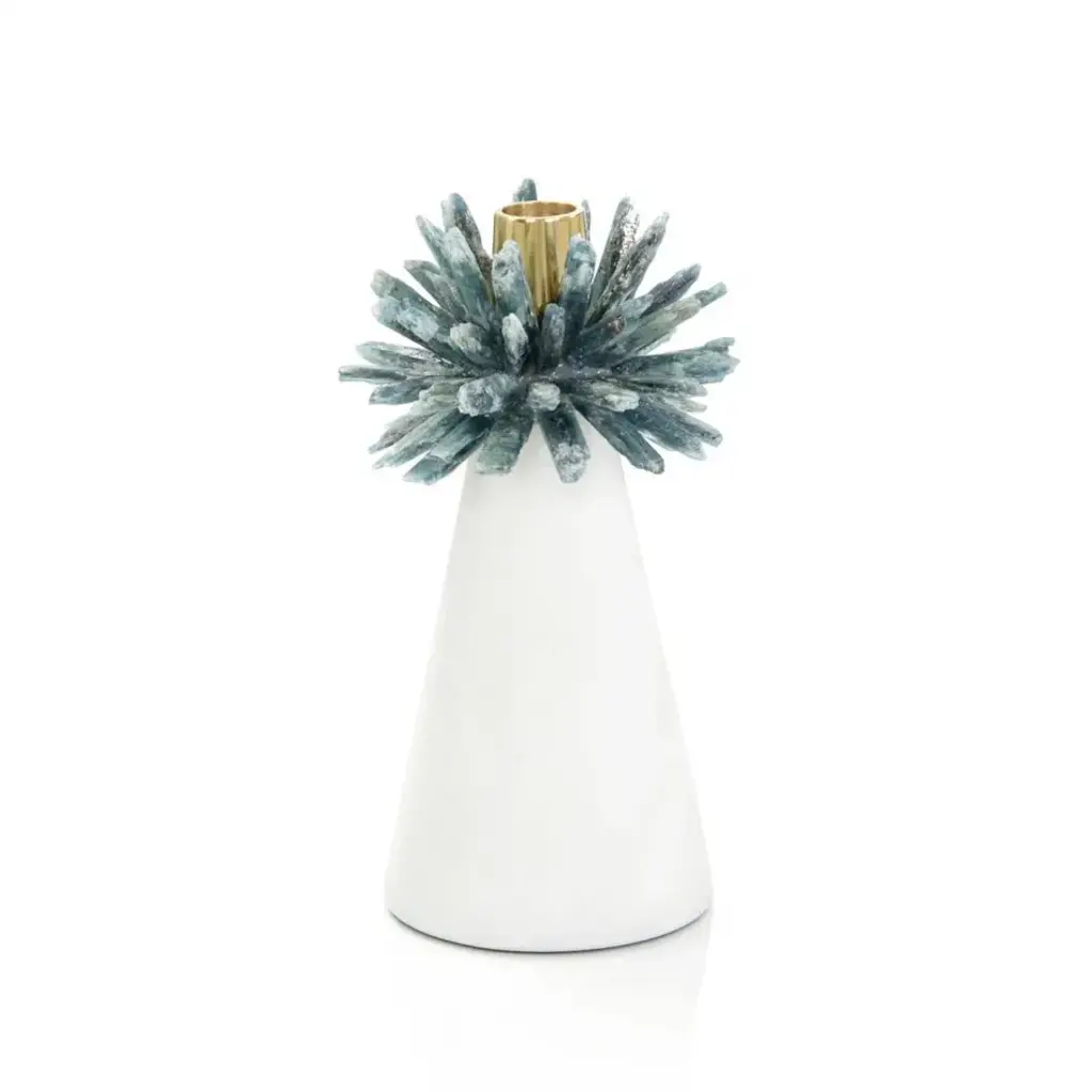 Make a statement in any space with this Large White Demijohn bottle embellished with blue coral and a Geode. This bottle is beautifully and carefully crafted to create an elevated look to your home décor. Pieces in our collections are handmade with natural sea life, geode stones, and crystals. All are unique in appearance and will vary slightly in character, size, color, etc. No two are alike making your Jamie Dietrich piece truly one of a kind. Details Available in two sizes (Large) Dimensions: 21'' H x 16'' W x 8'' D (X-Large): 28"H x 16"W x 10"D Please allow 4 -5 weeks for delivery Includes free shipping in the U.S.