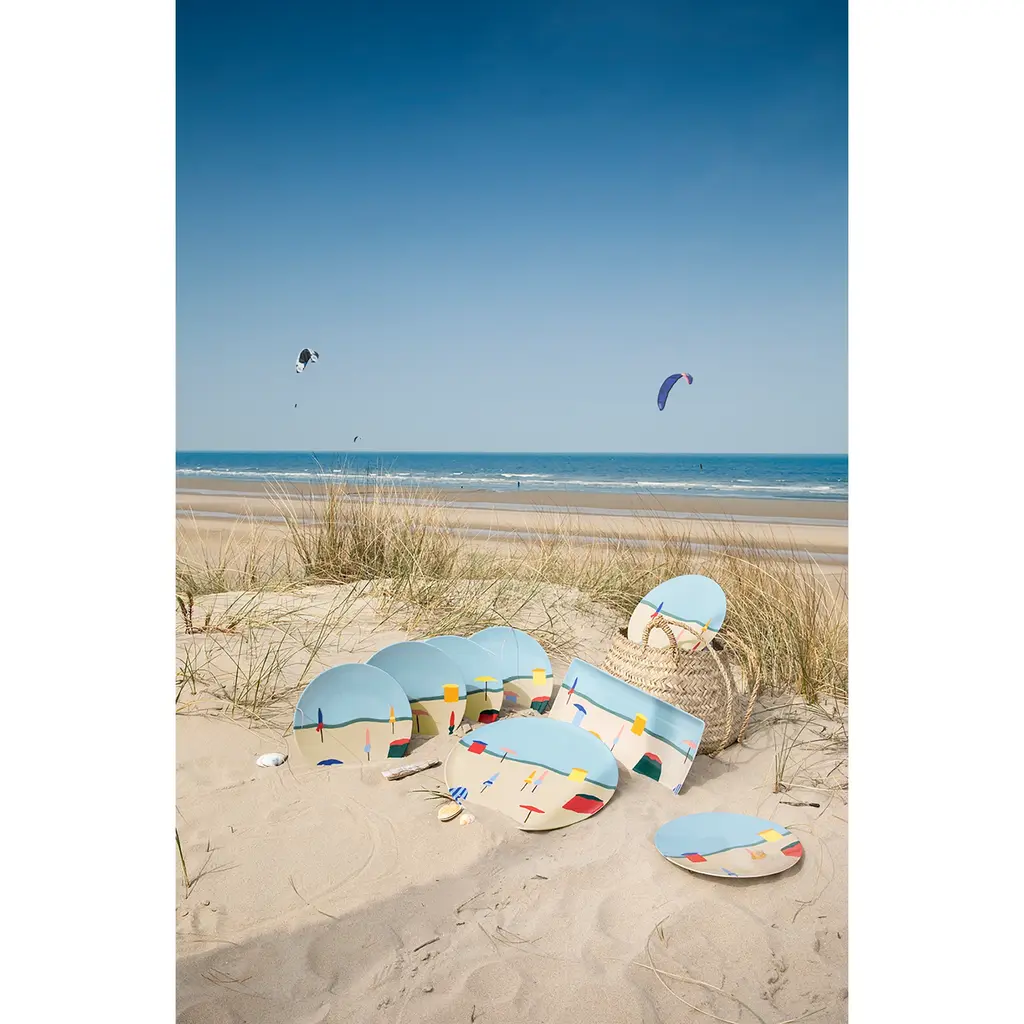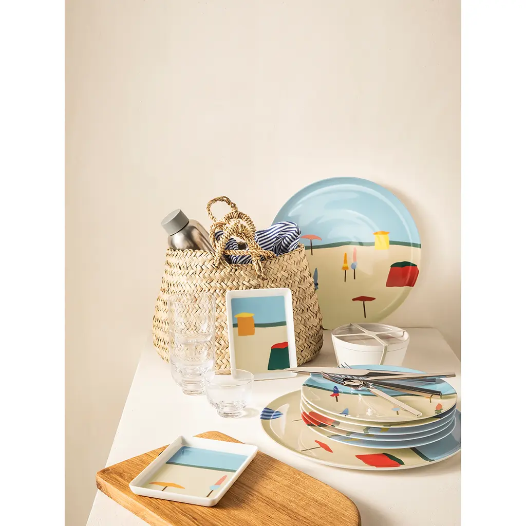 A playful seaside vista brings brilliant color and stunning style to the DEGRENNE Paris Destination Mer Collection. The beautiful porcelain pieces add a touch of whimsy to your table.