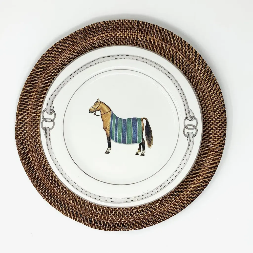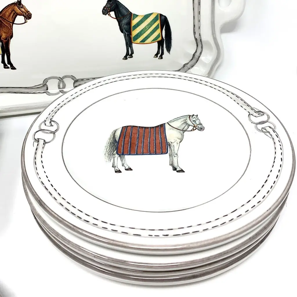 Devon Equestrian Dinner Plate - Set of 4, Made in Italy for The Mane LionEach plate features a different blanketed horse.The Mane Lion was born in 1979 in the heart of Philadelphia's fabled Main Line, offering a line of charming, hand-painted chip-and-dip serving pieces that enhanced the act of entertaining. Today, The Mane Lion continues to pursue that passion to create something that is particular and of the highest quality. We are proud that our products are crafted by master artisans in the best Italian factories, some of them generations old. Centuries of experience have enabled the Italians to produce the finest, most durable, most beautiful ceramic dishes on earth.