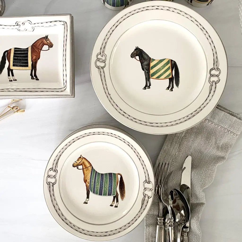Devon Equestrian Ceramic Salad Plates S/4, Made In Italy