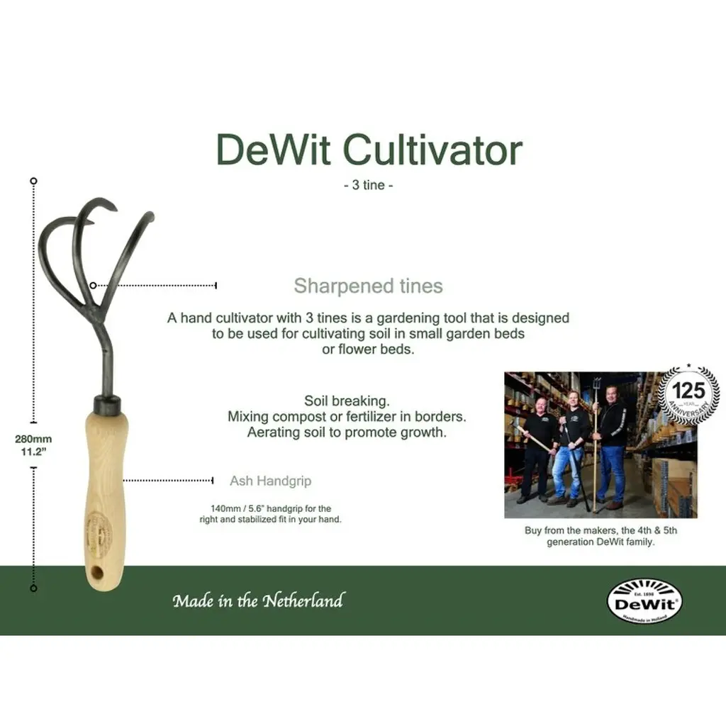 More than a tool it's an heirloom! Nestled in its special box this 3-piece Tool Gift Set makes a great presentation. The perfect gift for the avid gardener in your life. Set of three genuine DeWit tools to make your gardening chores easy! Includes 3-Tine Cultivator along with the ever-popular forged Trowel and Fork. Tools are constructed of tempered boron steel with ash hardwood handles. Made in Holland by the DeWit company and guaranteed a lifetime! Package: 14"L x 10"W x 2.5"H; 2.1 lbs.