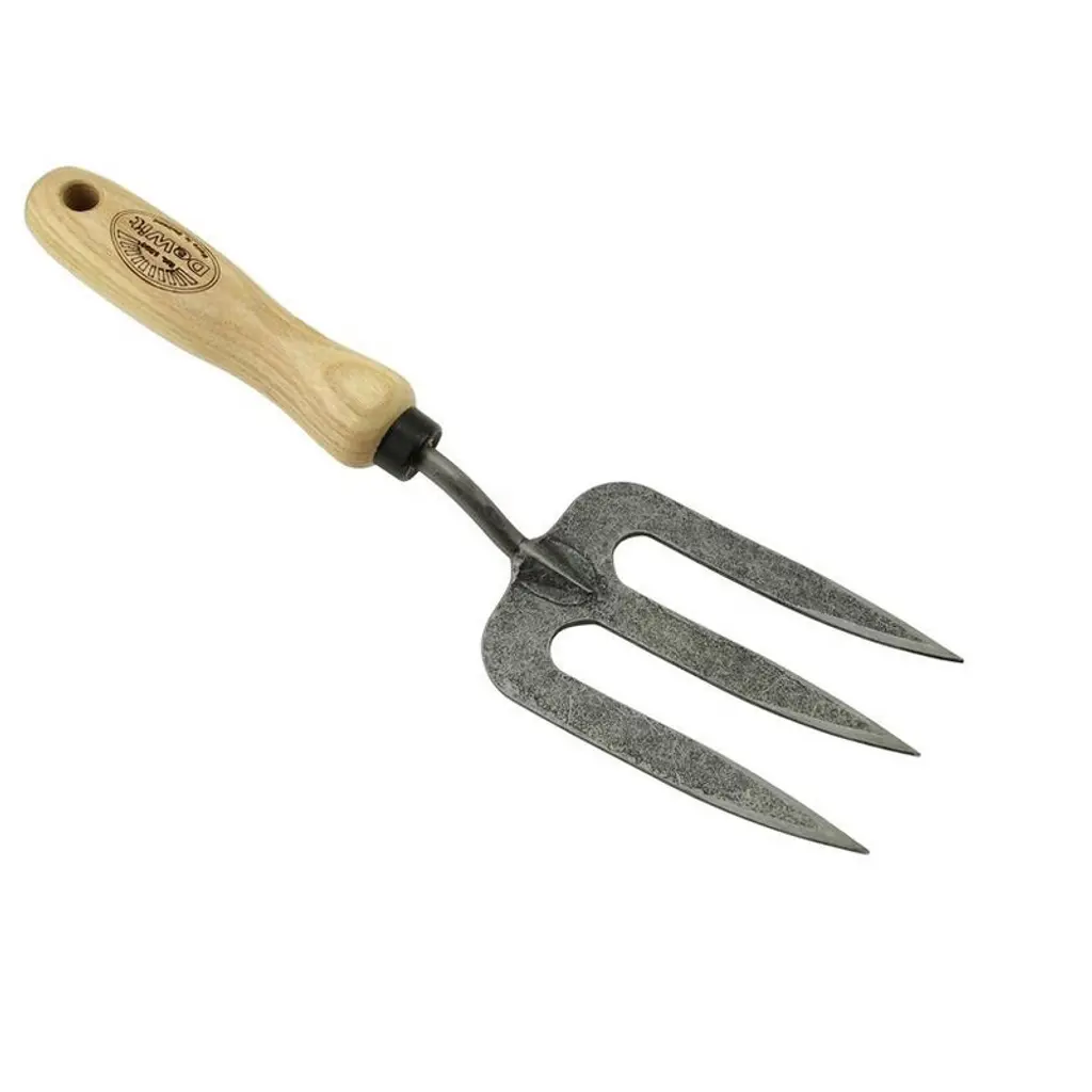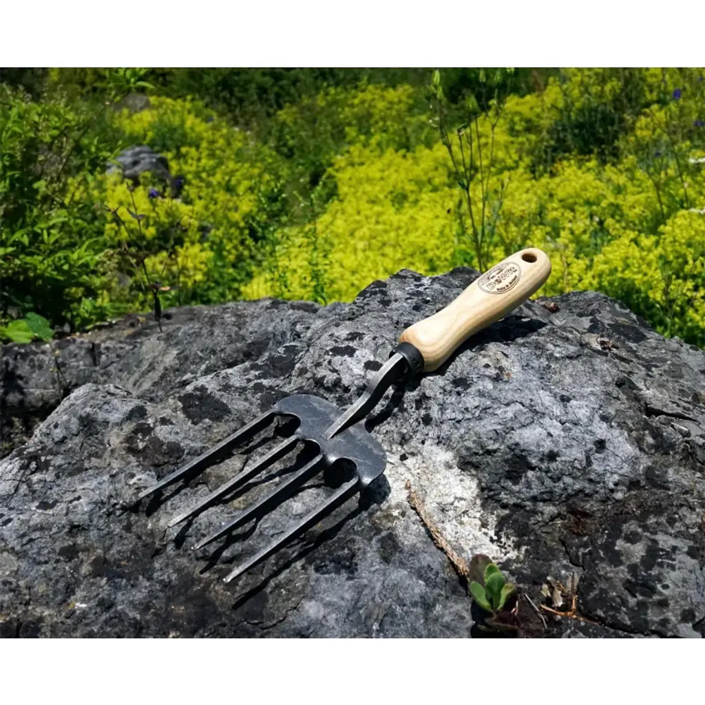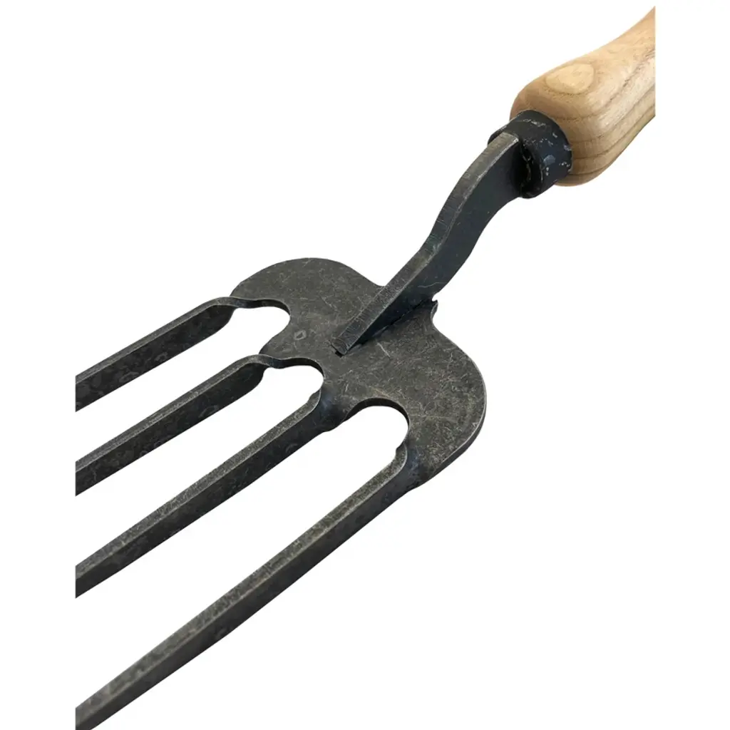 The DeWit Twisted Tine Fork combines innovative design with old-world craftsmanship for unmatched strength and durability. Made from hardened boron steel, its unique twisted tines are forged during the heating process, ensuring superior power and resistance to bending. Perfect for digging in tough clay soil, mixing, and aerating, this tool is designed to handle the most demanding gardening tasks. The FSC-certified hardwood ash handle provides a comfortable grip while supporting sustainable forestry. Manufactured in Holland with expert craftsmanship, this heavy-duty fork is built to last a lifetime.