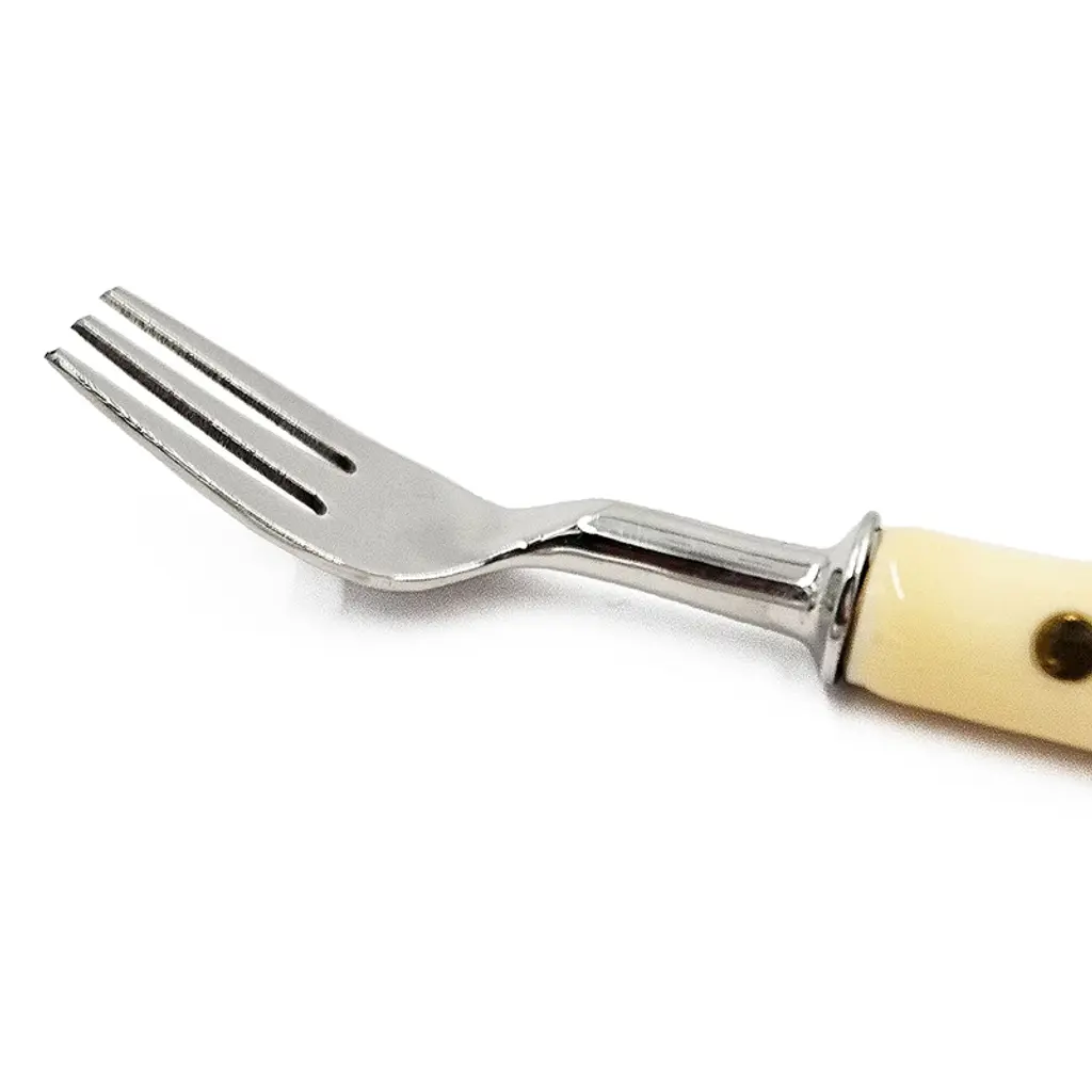 Setting the table is always more enjoyable if the components are an expression of your personal style. These pieces from the Alice Collection feature resin handles playfully decorated with metallic dots that capture attention and sparkle in the light. Each set includes four matching forks packaged neatly in a simple black gift box.