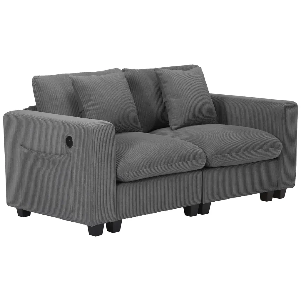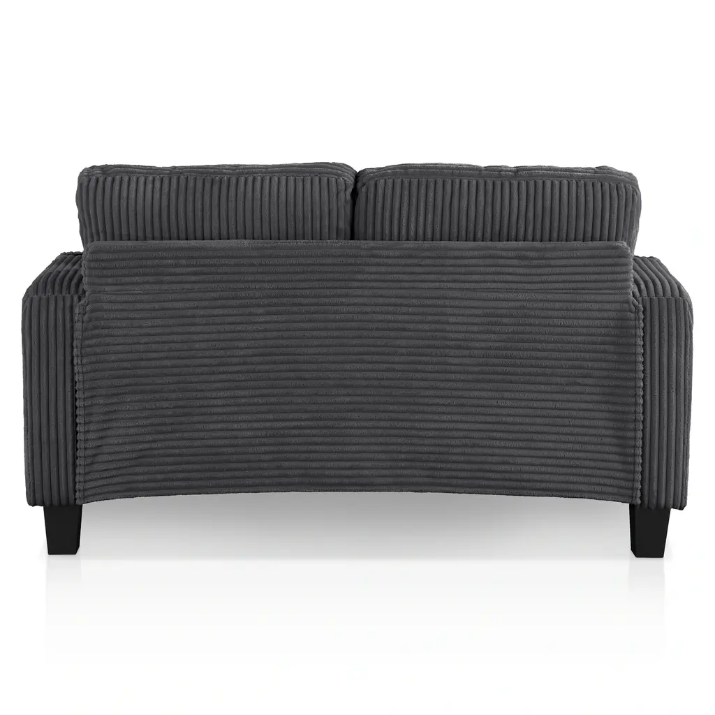 This small-space living loveseat combines stylish comfort with modern convenience, making it a perfect addition to compact living areas. Upholstered in a luxurious corduroy fabric, it offers a soft, inviting texture with plush cushions for ultimate relaxation. The loveseat is designed with built-in cup holders, side storage pockets ensuring all your essentials are within easy reach. With a sturdy frame and tapered plastic legs, it provides reliable support while maintaining a sleek, contemporary aesthetic. Available in two chic finishes — classic black and warm beige — this loveseat effortlessly blends into various decor styles, enhancing both functionality and elegance in your home. OVERVIEW: Includes one (1) loveseat Available in three (3) color options: Beige, Black or Dark Grey HIGH RESILIENCE FOAM: Comfort that bounces back, keeping your seat plush and supportive for years. No sagging, no lumps - just pure, cozy bliss every time you lounge 2 STEEL CUP HOLDERS: Integrated cup holders in a loveseat bring effortless convenience to your lounging! Whether it's coffee, soda, or a cozy nightcap, your beverage stays secure and within reach. Perfect for movie marathons, game nights, or just kicking back, this feature keeps your hands free and your sofa spotless 8 SIDE POCKETS: Keep remotes, books, snacks, and even your phone within arm's reach - no more digging through cushions Contemporary style Seats up to two (2) people comfortably Materials: Corduroy fabric, foam, MDF, engineered wood Durable Metal Frame Back: Rock-solid support with zero worries about wear and tear Corduroy Fabric: The plush texture adds warmth and style, while the ribbed pattern enhances durability and breathability. Perfect for lounging, movie nights, or lazy weekends, this fabric keeps you comfy while resisting daily wear Matching ottoman and sofa available, sold separately Instruction manual provided and some tools required for assembly Ships in two (2) boxes that may arrive at different times and/or days DIMENSIONS: Overall: 35 inches high x 61 inches wide x 34 inches deep Seat: 18 inches high x 49 inches wide x 22 inches deep Back height: 17 inches Weight capacity: 500 pounds Weight: 72 pounds CARE AND MAINTENANCE Dust or wipe with a soft, dry cloth. Avoid harsh chemicals or excessive moisture. WHAT IS: DH BASIC? Blend simplicity and function into your home space with our DENHOUR BASIC pieces. Specially curated for small-space living or a new chapter in life, DH BASIC focuses on what's essential for a clean, organized and minimal home.