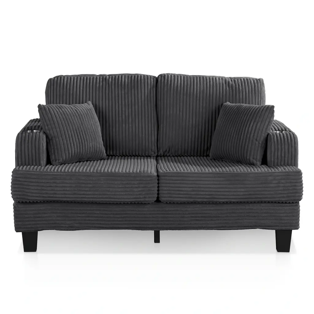 Dh Basic Modern Chenille Loveseat With Cup Holders And Side Pockets By Denhour - Dark Grey