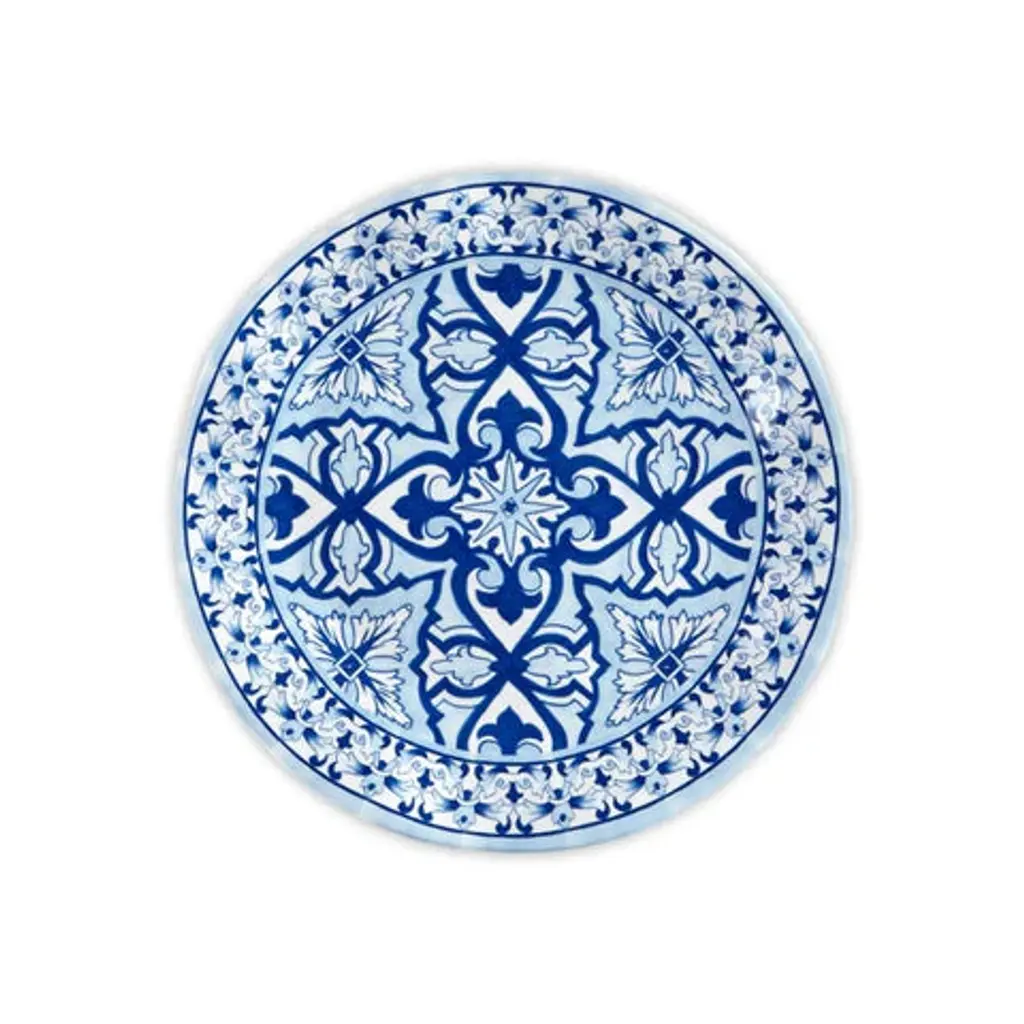 Peacock blue is a fresh new look for the historical Dhara pattern. A glossy ornamentation of platinum adds the mystery and enchantment of starry desert nights. Five piece place setting includes dinner plate, dessert plate, bread & butter plate, teacup and saucer. Founded in 1826, Deshoulières is the leading French porcelain maker today. Their fine white Limoges porcelain is strong enough for everyday use. Their style is well known around the world. The painters and decorators have generations of knowledge. Inspired by trends from both interiors and fashion, their patterns are always refined. Deshoulières embodies a true spirit of French style. With their new collections, Deshoulières delights everyone from homeowners to professional chefs. Invite elegance to your table with Deshoulières.