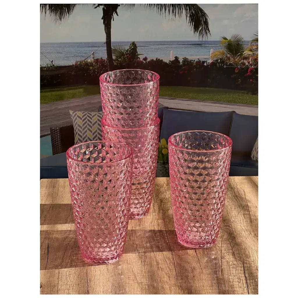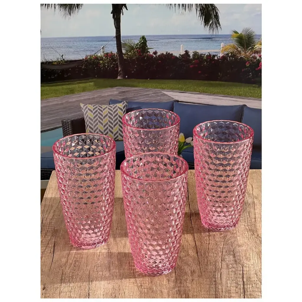 Diamond Cut Acrylic Glasses Drinking Set Of 4 Drinkware Set - 3.50"w * 3.50"d * 6.00"h - Pink - 4 Piece - 3.50"w * 3.50"d * 6.00"h