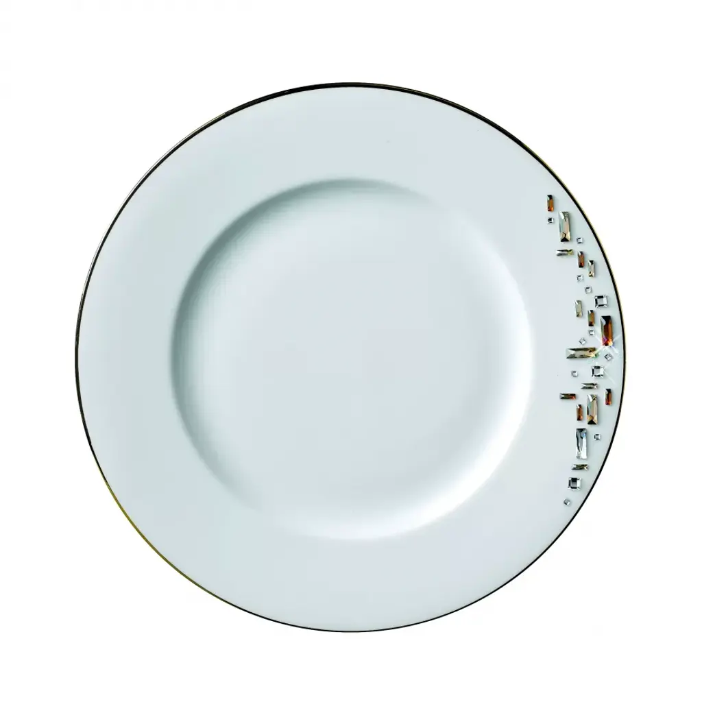Inspired by the Roman goddess of the moon, Diana dinnerware glows with power and beauty. Bathed in a clear moonlit glow, each graceful plate is edged in hand-painted, 24 kt gold or platinum and adorned with Swarovski crystals. Each gem is like a tiny piece of moonlight. A truly one-of-a-kind statement, Prouna Jewelry china makes a great wedding gift, and is sure to become a prized family heirloom. Prouna Jewelry marries the beauty of fine bone china dinnerware with the sparkle of Swarovski Crystal Elements. Sculptural white china serves as an elegant base to hand-painted designs, gold and platinum ornamentation and dazzling arrays of Swarovski crystals. With several patterns to choose from, each with its own unique story, you're sure to find one you love. The crystals are attached with a special method that is tested dishwasher safe. A true marriage of technology and style, Prouna Jewelry Dinnerware is the height of luxury.