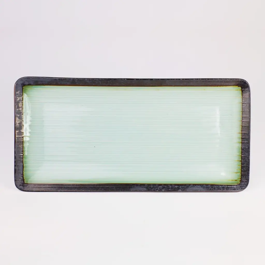 Serving made simple. This rectangular porcelain tray offers a solid color design, perfect for displaying and serving your favorite food and beverages. With its chip-resistant durability and dishwasher-safe convenience, it seamlessly blends style and functionality.
