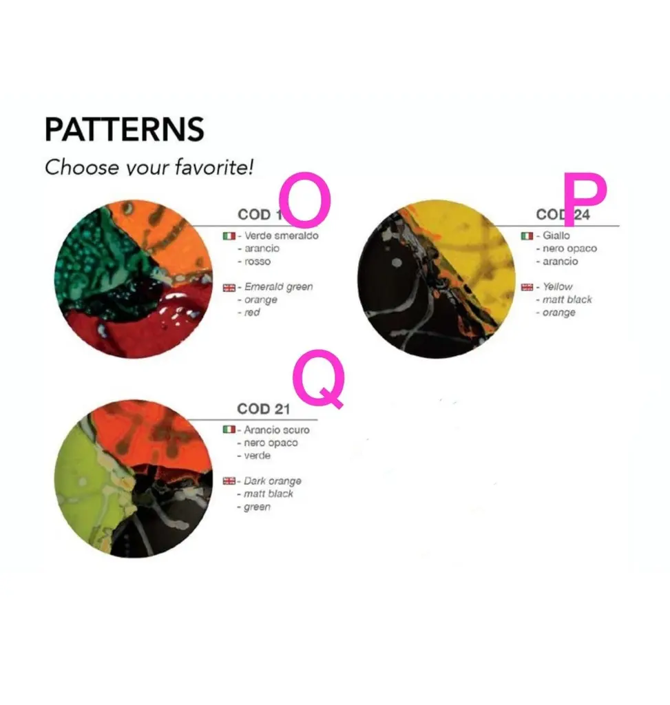 For more than 30 years this artist has revolutionized the way of thinking about stone. Their artisan techniques are the result of careful research and deep knowledge of the subject: they involve the meticulous artistic work of those who know how to see beyond, transforming the unexpected into a formula of uniqueness. The eclectic and resistant combinations in lava and volcanic stone are the effect of processes that change the shape of the material through the idea, fixed and tempered in an oven that forges its identity. Size Ø 27 cm.The incredible characteristics of volcanic stone and lava rock make them perfect materials for projects with high customization capacity: beautiful even in its natural form, the stone is coated with different glazes and hand-painted decorations for unique pieces of every color, size and shape. With its extraordinary resistance, the table tops can live both indoors and outdoors.Volcanic stone (mined underground) is used for the Classic tops (SUN), while Lava Rock (above ground) is used for the Design tops (COD). Lava rock is denser and harder than volcanic stone and it also bakes dark charcoal and does not require a white glaze base coat prior to adding the ceramic glaze. This allows the artist much greater flexibility and freedom as the organic color of the rock does not influence the designs.The term Majolica lava stone commonly indicates a lava basalt object that has a majolica surface decoration. In reality, since ceramics rather means a large grouping of terracotta artifacts, this decorative technique in the specialist field is more correctly referred to as Majolica lava stone or Majolica on lava stone. Thanks to the particular aesthetic potential due to ceramics, combined with the remarkable mechanical and physical resistance of basalt, ceramic-coated lava stone is used for the production of tables, tops for kitchens and bathrooms, floors, mosaics, shower trays, sinks and coverings.The process of working stone and volcanic lava is divided into several phases, all carried out by hand in the studio: cutting, glazing, hand decoration, vitrification and double firing at over 1000 degrees. All this makes the material suitable for any indoor and outdoor environment, as it does not undergo any variation if exposed to snow, rain, sunlight or salt. Furthermore, it has excellent characteristics of impact resistance, does not absorb any type of substance, does not stain, does not alter in contact with heat sources such as embers, hot pots or acid solutions and has a degree of resistance to scratching higher than marble.The artist's workmanship is an expression of the great technical and custom ability of its craftsmen, who elaborate complex shapes and combinations to create objects with a strong, fluid and harmonious identity like the hand of nature. The ability to investigate the stone and its facets allows you to work objects whose appearance you can only imagine: present and future alternate in the eyes of the craftsman, until the moment of firing, which consecrates the piece in its indestructible final form.