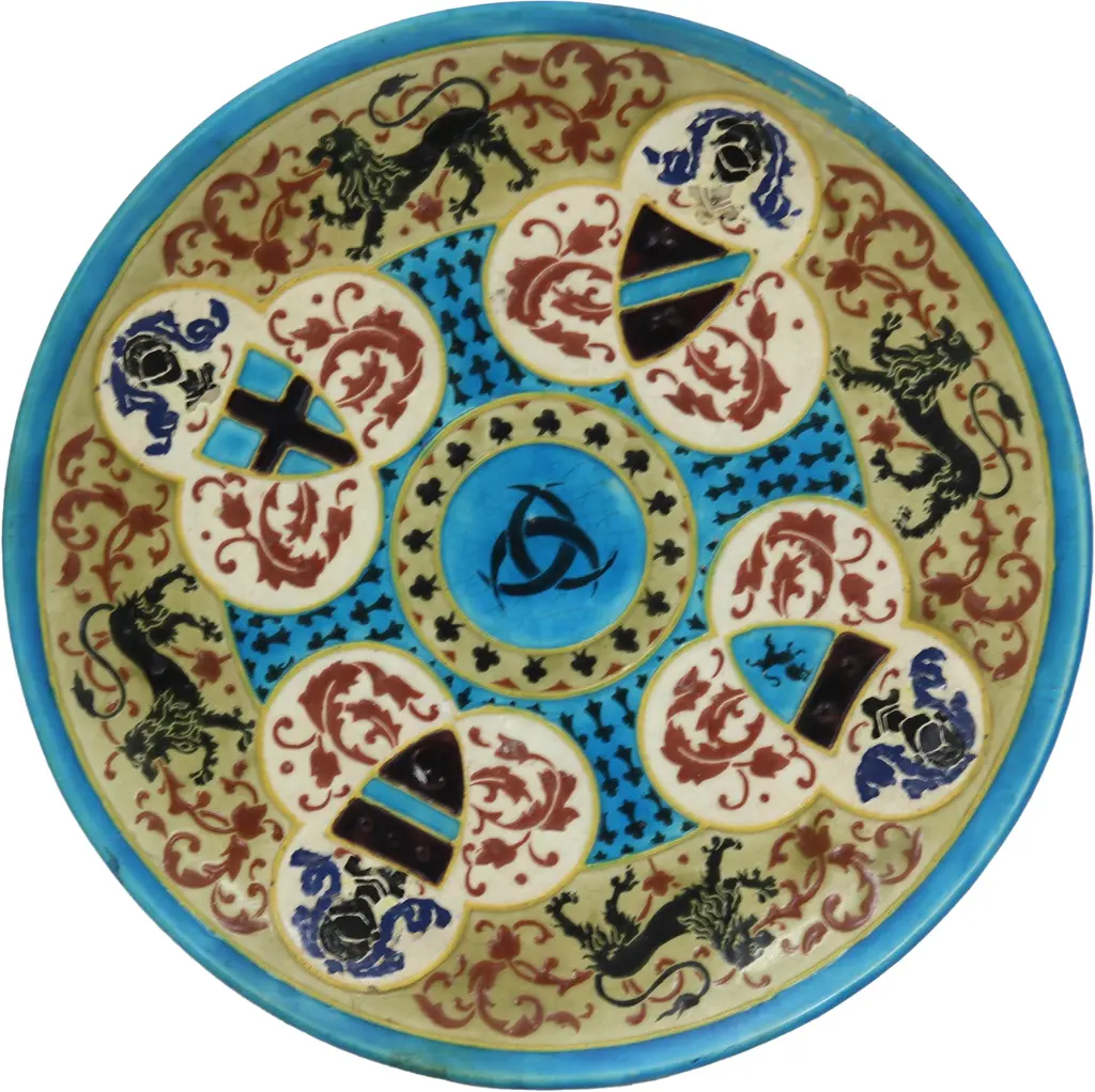Dinner Plates Set Six Charger Platters Serveware Majolica Ceramic Aquamarine