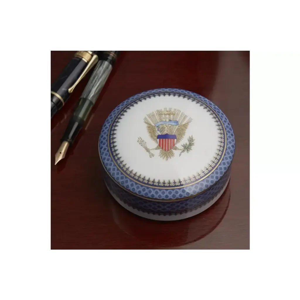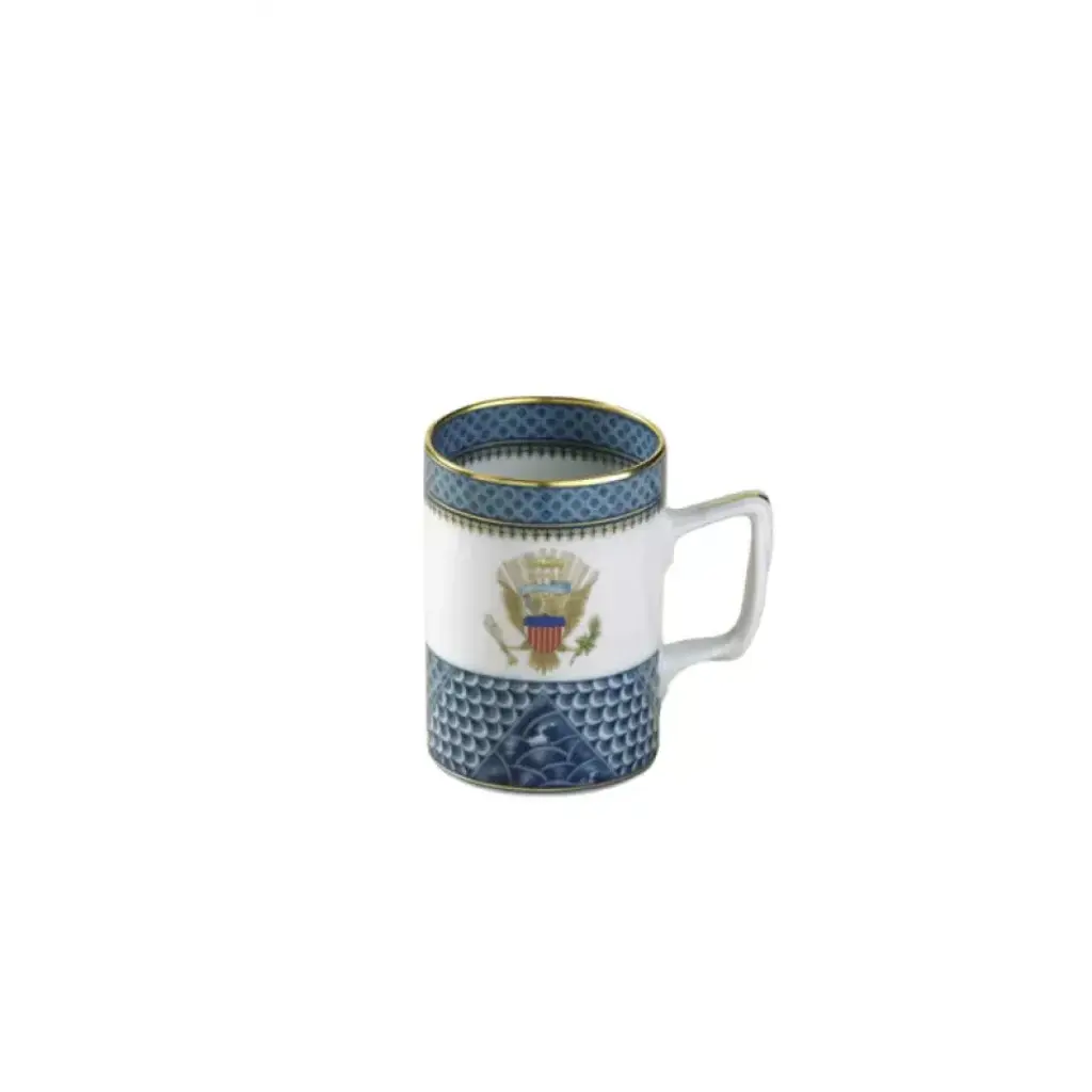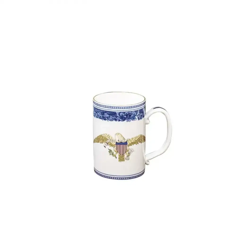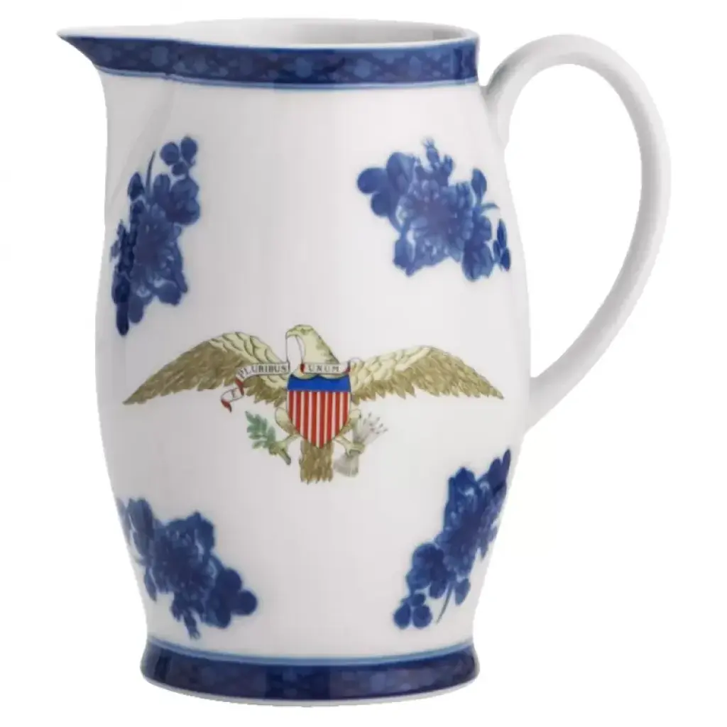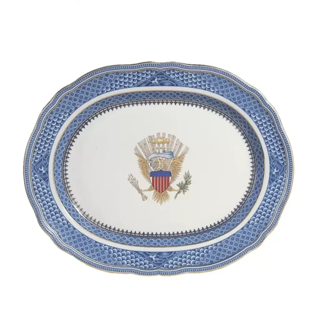 The eagle plate, when used on the table, makes a stunning patriotic presentation. The eagle is one of the most cherished symbols of American design and the cobalt Fitzhugh border of butterflies, honeycomb and bugs adds to the importance of the plate. A favorite with brides, Mottahedeh specializes in luxurious patterns and unique, elegant shapes that are reproduced from china found in museums and historical societies. The patterns feature complex and vibrant colors, and hand-painted gold decoration. The pieces are surprisingly fresh and timely, and look wonderful in both contemporary and traditional dining rooms.
