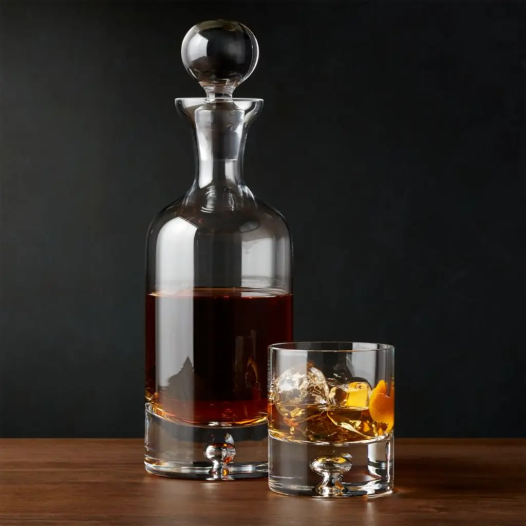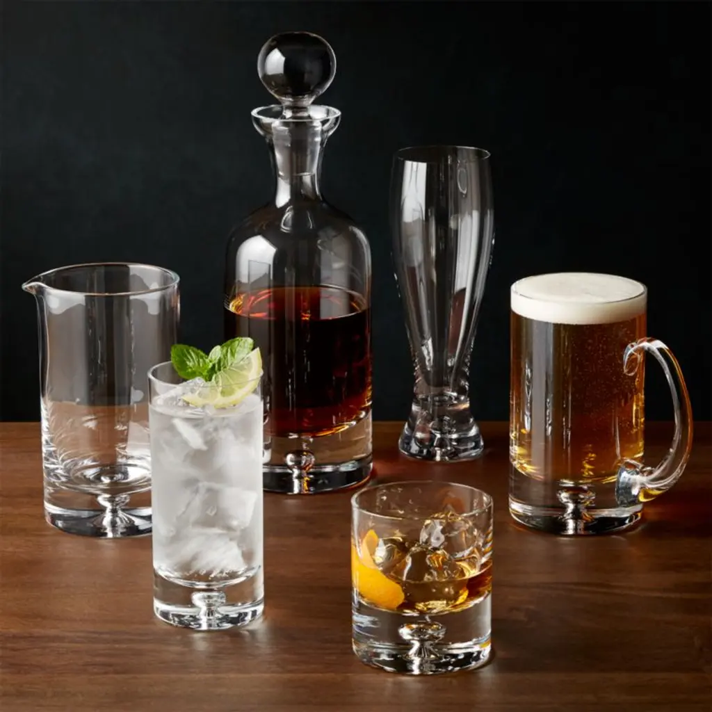 Topped with a large round stopper, the gracefully shaped decanter features the Direction collection's signature open bubble in the sturdy sham. Crafted by skilled artisans in Poland, the hand-blown decanter is made of crystalline glass for exceptional clarity.