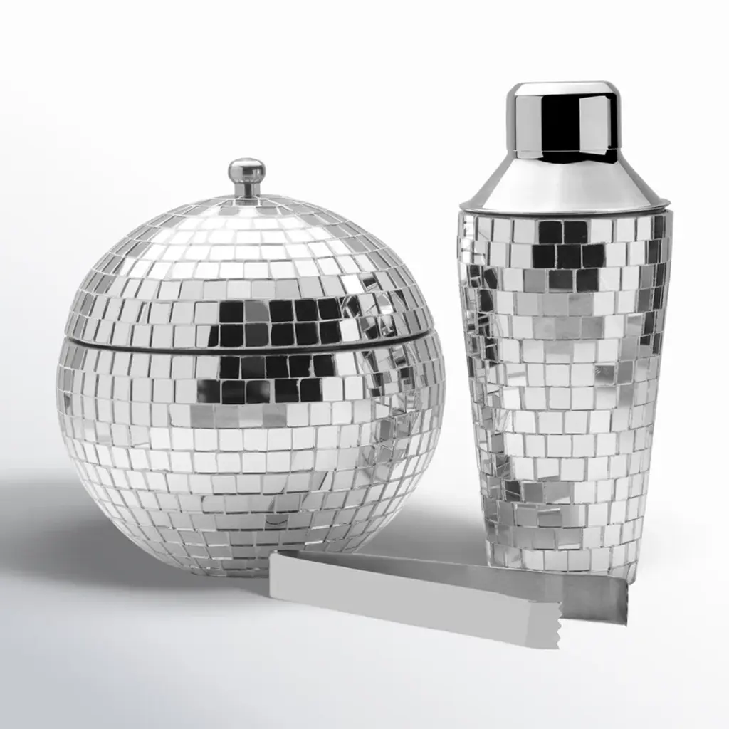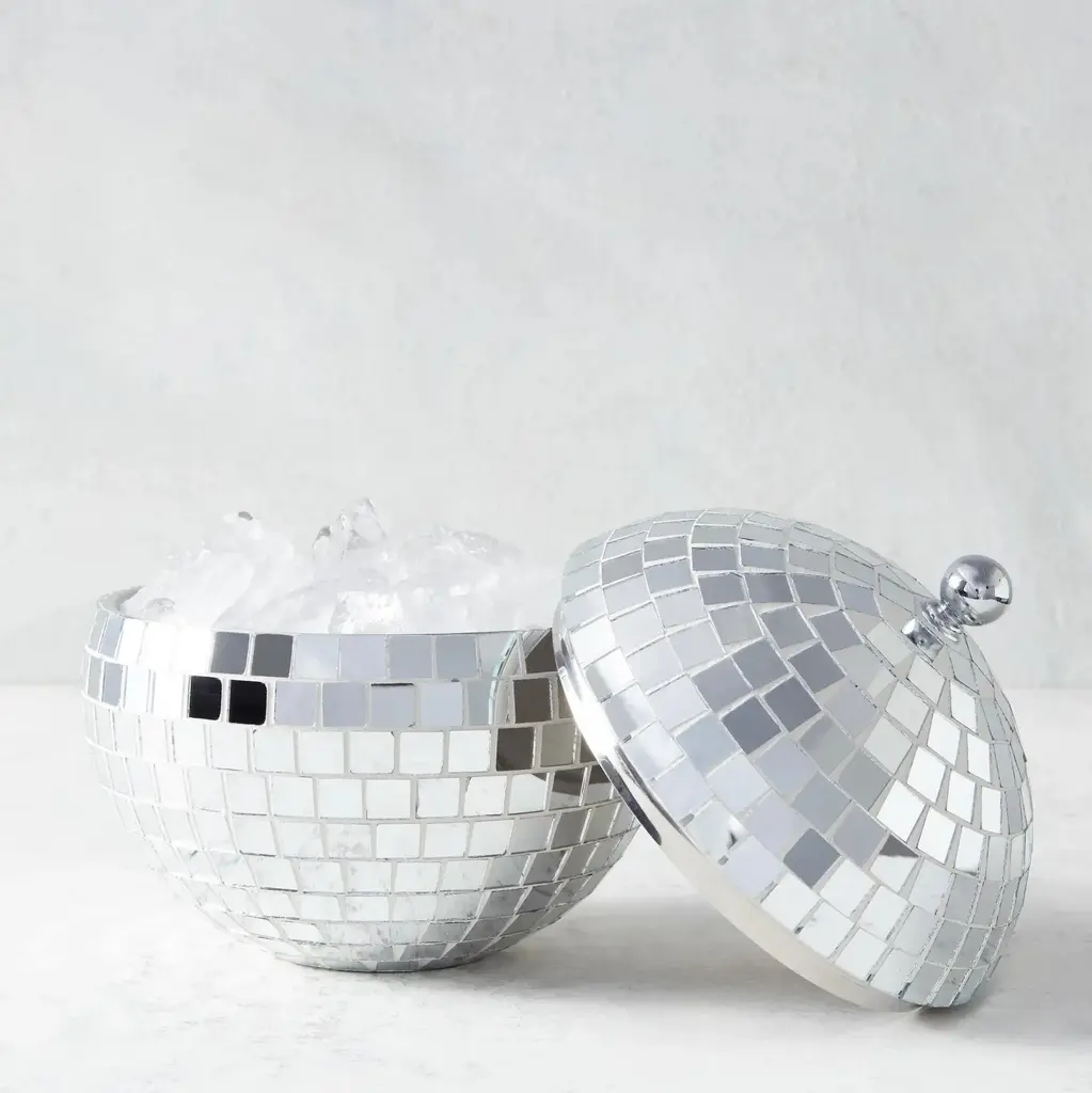 Featuring a mosaic of mirrored glass tiles, this glitzy disco-ball ice bucket brings the dance party to your bar cart. Z Gallerie exclusive