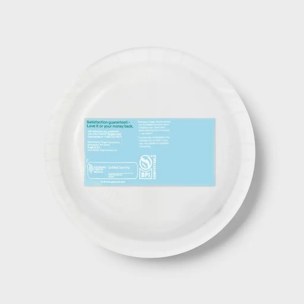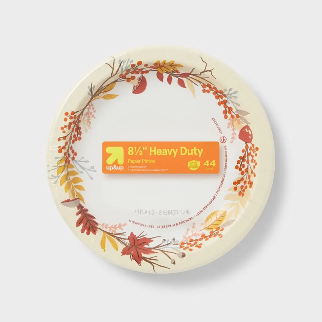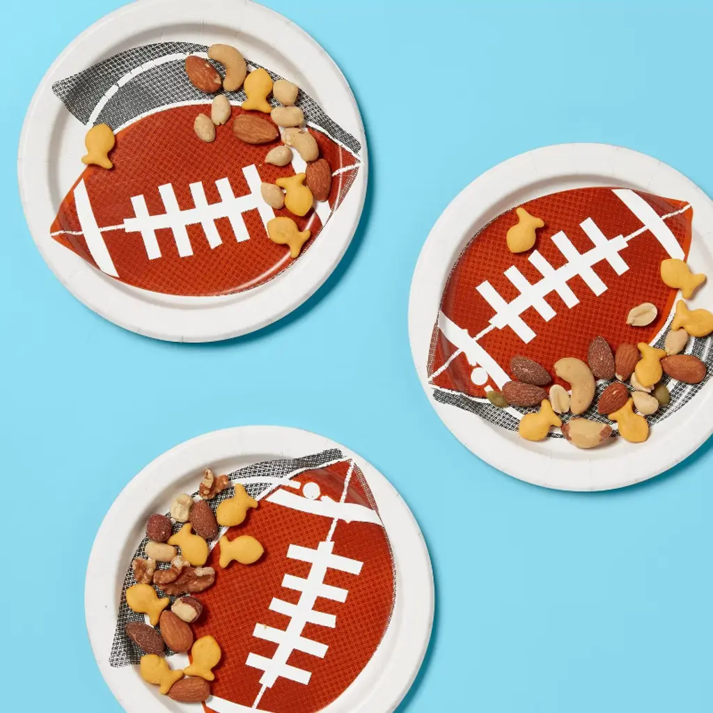 Enjoy watching football games with friends and family with these 60-Count Disposable Plates from up&up™. This pack of round plates features a football print at the center for a sporty look. Made of paper, each disposable plate offers ample space for snacks and more.up&up™: We believe making smart choices for the people, places, and pets in your life should be easy and affordable. And, having quality you can trust should be a given. That’s why you can count on our promise – caring for your everyday in every way. Satisfaction guaranteed – Love it or your money back.