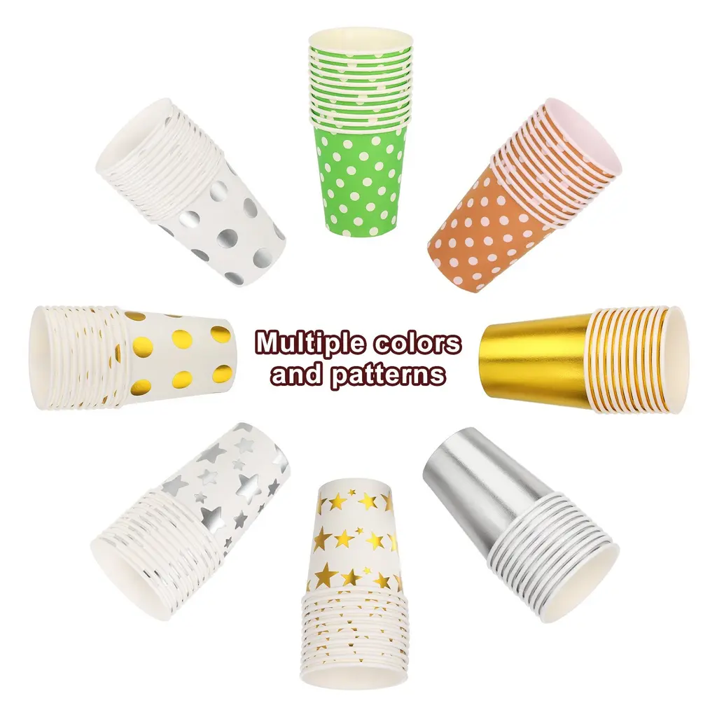 [Leakproof and Durable]: The sturdy paper cups are made of thickened paper, which is sturdy and durable and not easy to tear, and can be used by guests throughout the party.[Fashionable Appearance]: The cup body color is brighter and more lively than the traditional white or primary color,which can not only be used for drinking but also as decoration, adding taste to any event, easily meeting your daily and party use needs, and can be matched with all your plates, cutlery and other tableware.[Practical and Convenient]: The edge of the paper cup is rolled, comfortable to drink, and can be used for any hot or cold drinks, without worrying about hurting your hands, because these cups have excellent heat insulation properties.[Wide Application]: Suitable for home or commercial use, suitable for Christmas, Halloween, birthday parties and tea parties, so that you can free up time to entertain guests without worrying about washing dishes.Specification:Capacity: 250mlHeight: 85mm/3.35"Bottom: 54mm/2.12"Diameter: 73mm/2.87"Material: PaperColor:Gold polka dotPackage Contents: 50 pack x Paper cups