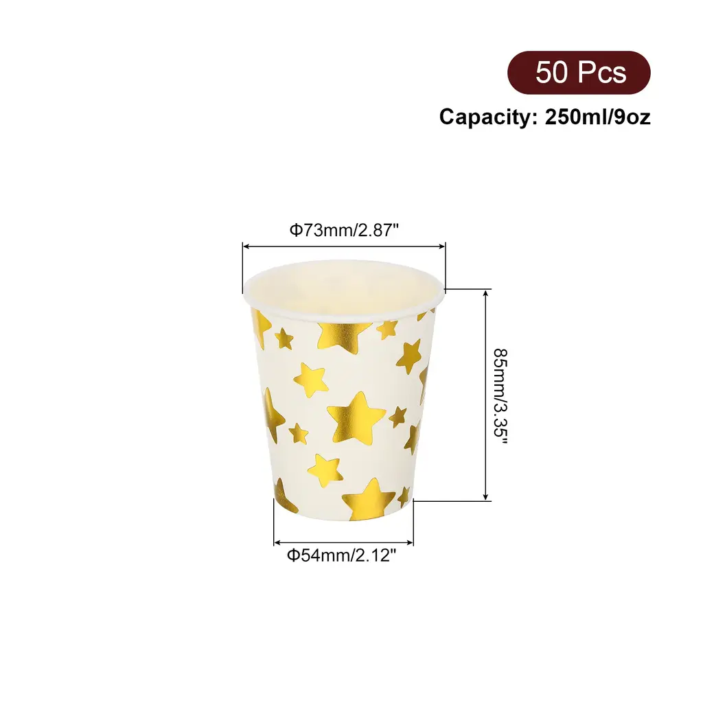 Disposable Paper Cups, 50 Pack 9 Oz Decorative Cups For Party, Event - Silver Star