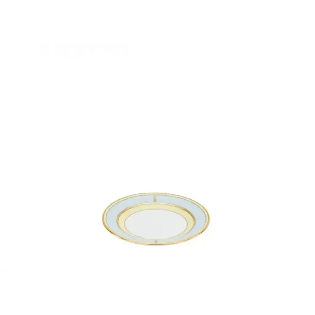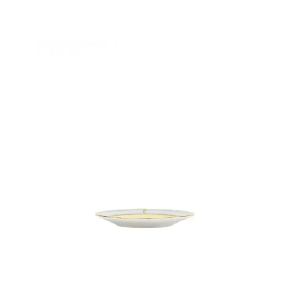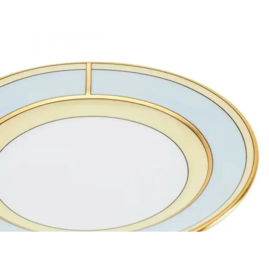 Set of two porcelain coffee saucers with Celeste and gold decoration. New Diva collection. They are distinguished by their luminous gold threading, sky-blue decoration, and iconic Colonna shape, which is evocative of the vivacity of 1950s Italian cinema and pays tribute to the silver screen divas of the era. They complement the coffee service from the same line alongside the matching mugs, coffeepot, sugar bowl, and milk pitcher, all of which are designed to be mixed & matched in combination with the four available pastel colors. Sophisticated and feminine, Diva is a collection of porcelain tableware and giftware that features clean lines and a functional design that will steal the spotlight on your table or in any home or office setting.