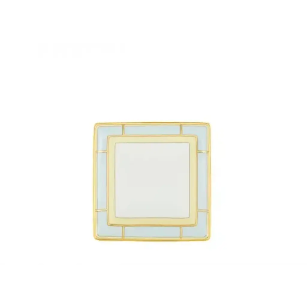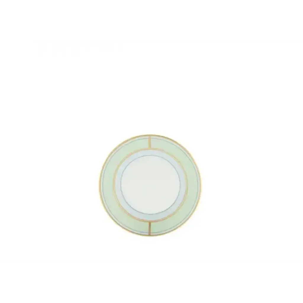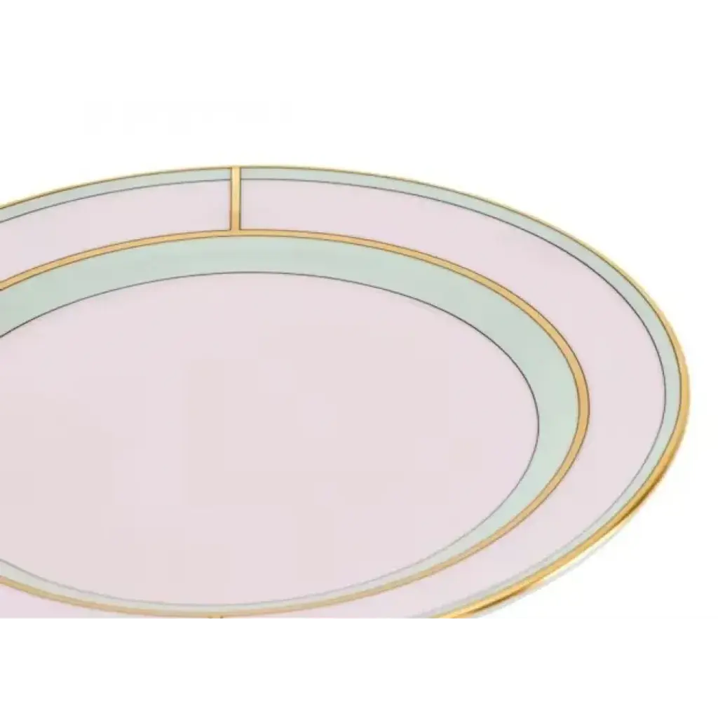Set of two porcelain tea or bread plates with Rosa and gold decoration. New Diva collection. A pink and green decoration entwined with luminous gold threading adorns the fine porcelain. Their versatile design suits your needs throughout the day. Pair them with matching tea cups at breakfast or use them for serving gourmet sandwiches at lunchtime. Diva expands the Ginori 1735 range with an effervescent and dynamic selection of porcelain tableware & giftware. It celebrates mid-century Italian design as it reinterprets the iconic Colonna line, the award-winning collection by designer Giovanni Gariboldi that features stackable elements that can be stored in small spaces.