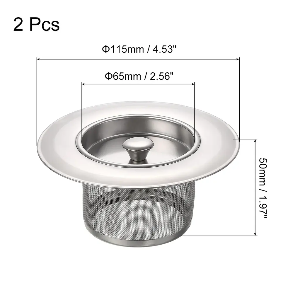Features 2 millimeter holes drilled into the strainer to prevent clogging in kitchen sinks and allow food particles to be collected and water to easily flow through. Strainers offer a long lasting look and completely cover existing drains. High quality stainless steel for rust free and non-deforming long lasting usage. Easy to clean - dishwasher safe or use warm water and soap.