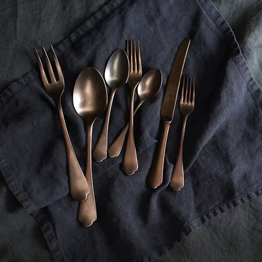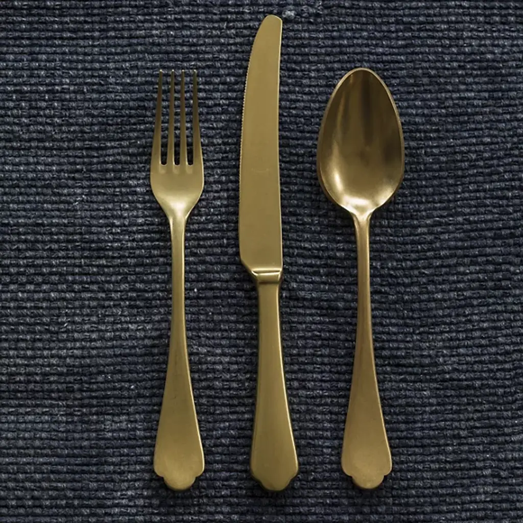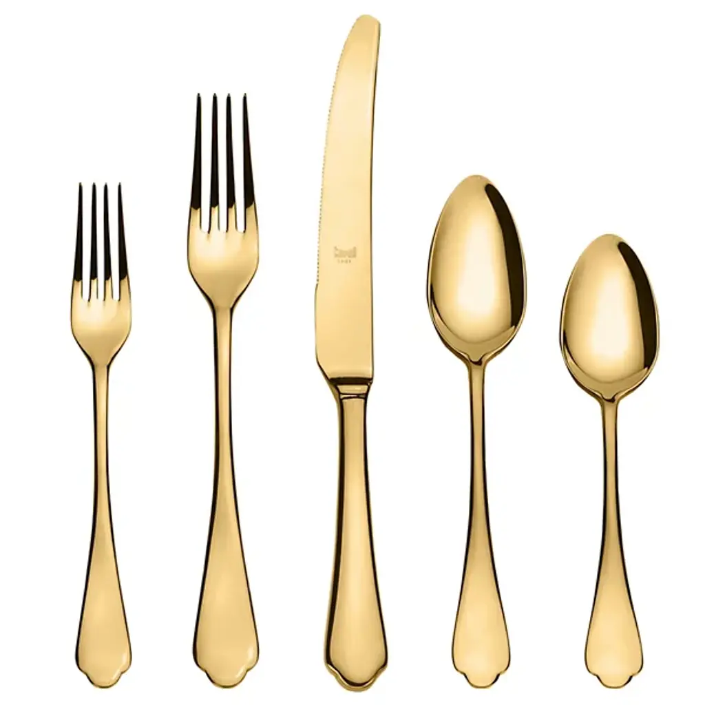 The Dolce Vita 20-Piece Flatware Set by Mepra brings a touch of luxury and elegance to your dining room. Made in Italy with 18/10 PVD coated stainless steel, it boasts a high-quality titanium coating for exceptional durability. Its design is perfect for a glam dining experience, combining style with functionality. This cutlery set is dishwasher safe, making it a practical choice for those seeking opulence and convenience in their dining space.