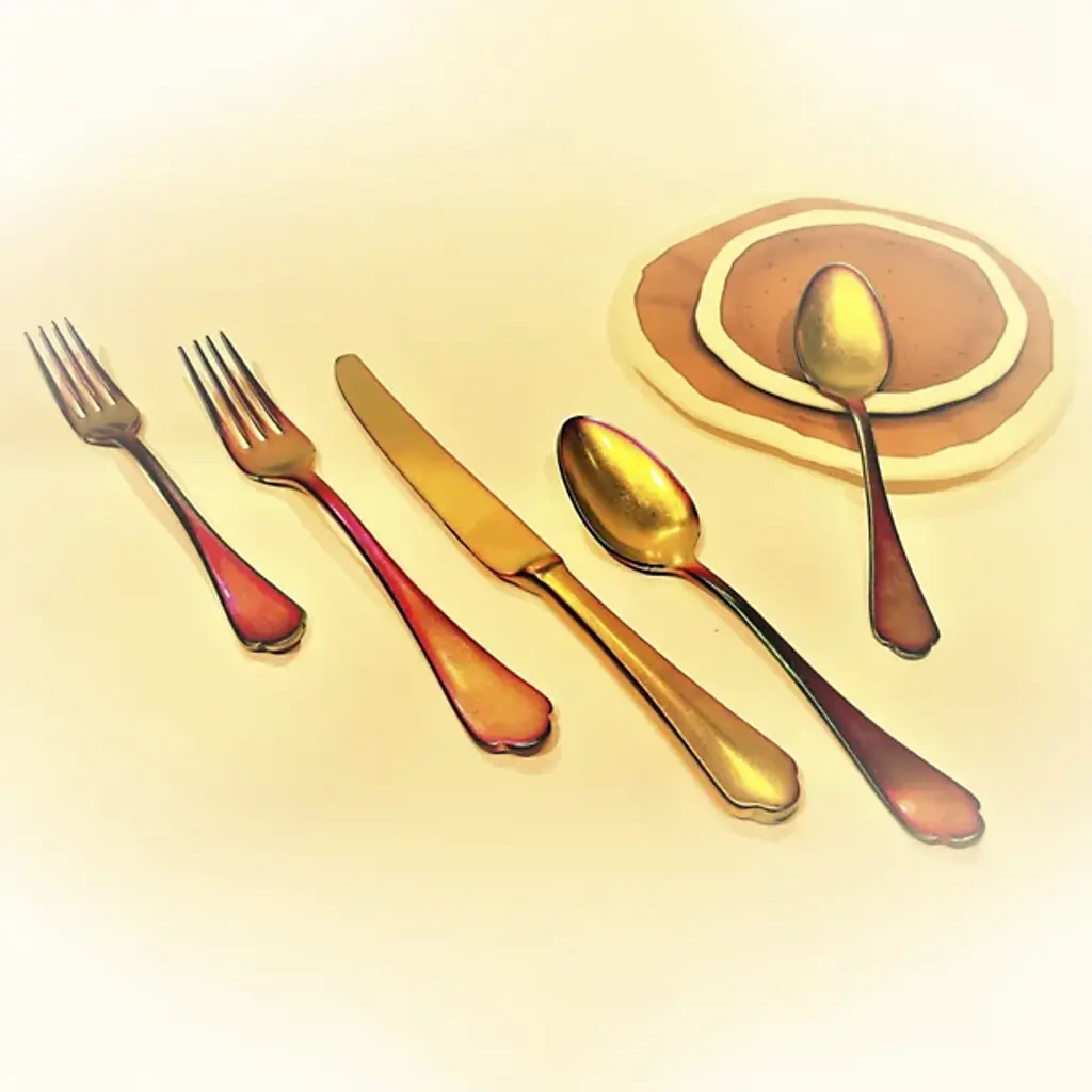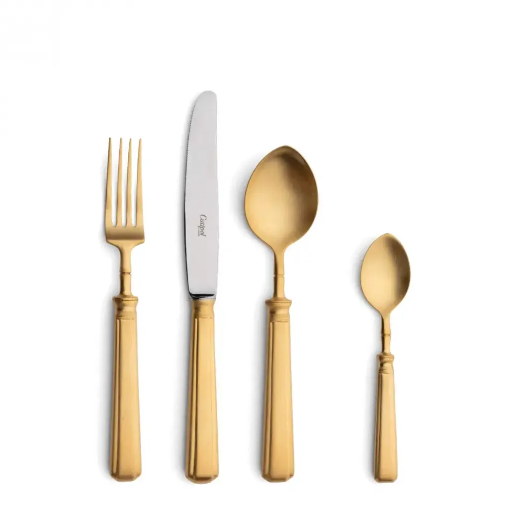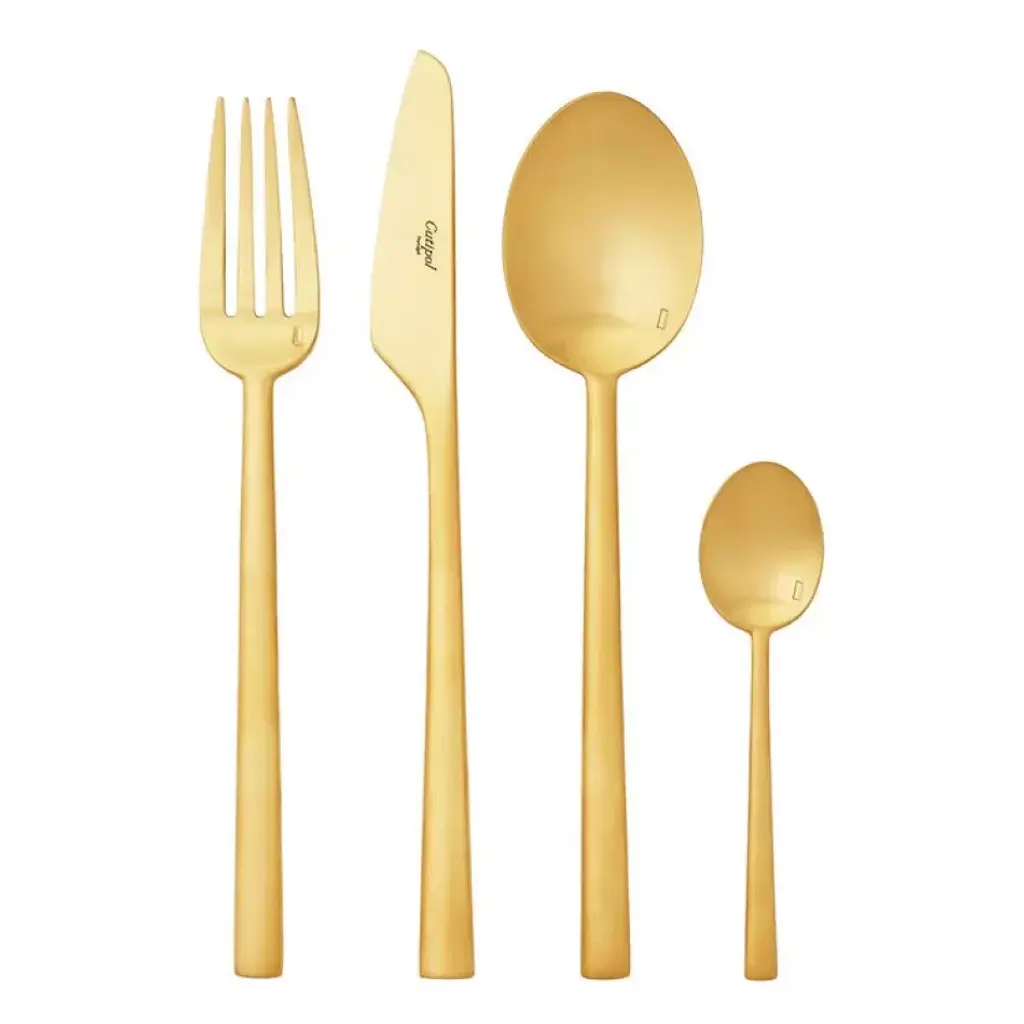Introducing the Dolce Vita 5-Piece Flatware Place Setting by Mepra adds luxury to any dining experience. Crafted from durable 18/10 PVD-coated stainless steel, this set combines style and practicality. The knives feature double serration for lasting sharpness, while the dishwasher-safe design ensures easy cleaning. Made in Italy, the Dolce Vita Flatware set is a perfect blend of functionality and elegance, offering a sophisticated touch to everyday meals or special occasions.