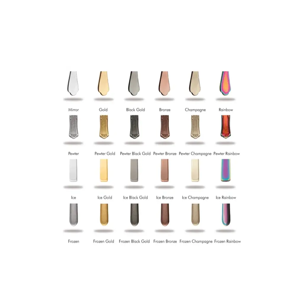 Made in Italy with the highest quality of 18/10 stainless steel, 4,0 mm thick, very durable, and ergonomic. Knives have double serration for durable sharpness. Dishwasher safe. Enhance your dining experience with this beautiful Italian flatware! Stainless Steel is coated with PVD Titanium Coating. Tested and guaranteed for more than 3000 washes in a commercial dishwasher. The special Titanium Plating Process, Originally developed by NASA, gives the surface of Stainless Steel an extra hardness and makes it dishwasher safe. The finish is durable, inoxidable, dishwasher safe, and food safe. The production process is not galvanic and does not produce pollution.