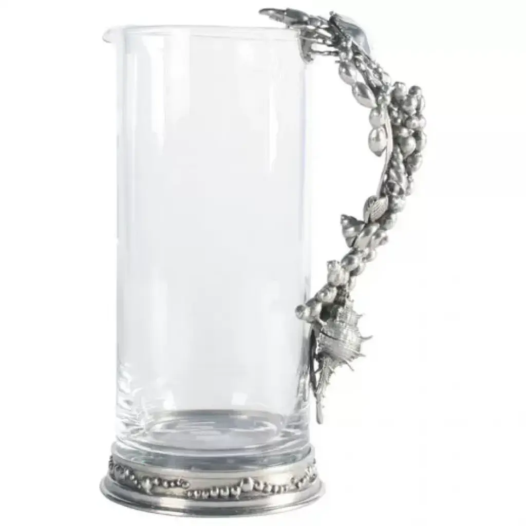 This jug with a hand-ground crystal body with marine decoration, dolphin-shaped 925 Sterling silver lid, and handle is a refined and luxurious work of art that combines the elegance of crystal with the sophistication of silver. The body of the pitcher is made of high-quality crystal that can reflect light in a striking way. The dolphin-shaped lid and handle give the pitcher a unique and charming design element. The handle provides a secure grip and the pitcher has a 1.1-liter capacity. This piece is currently on show and immediately available at Artemest Galleria New York.