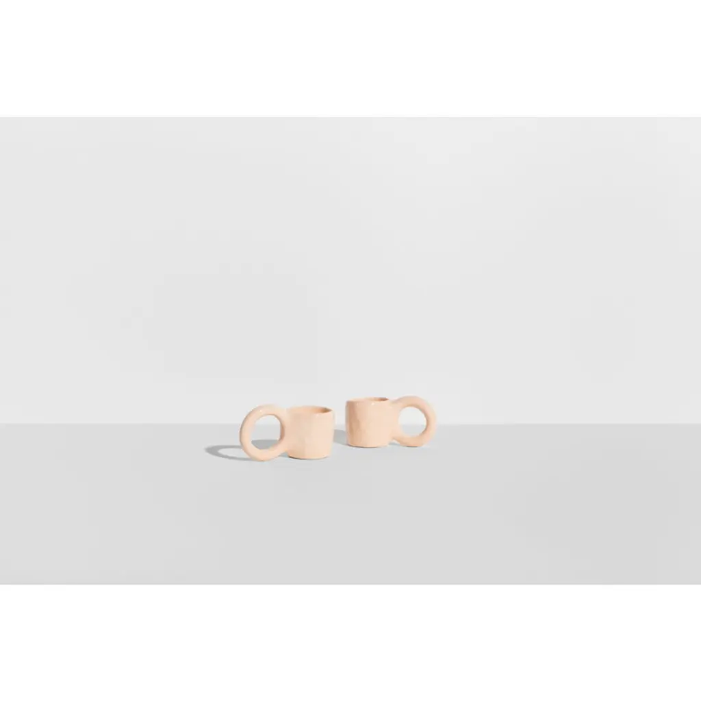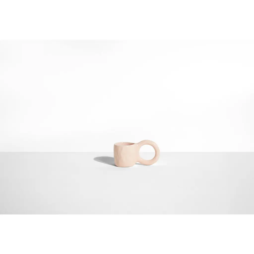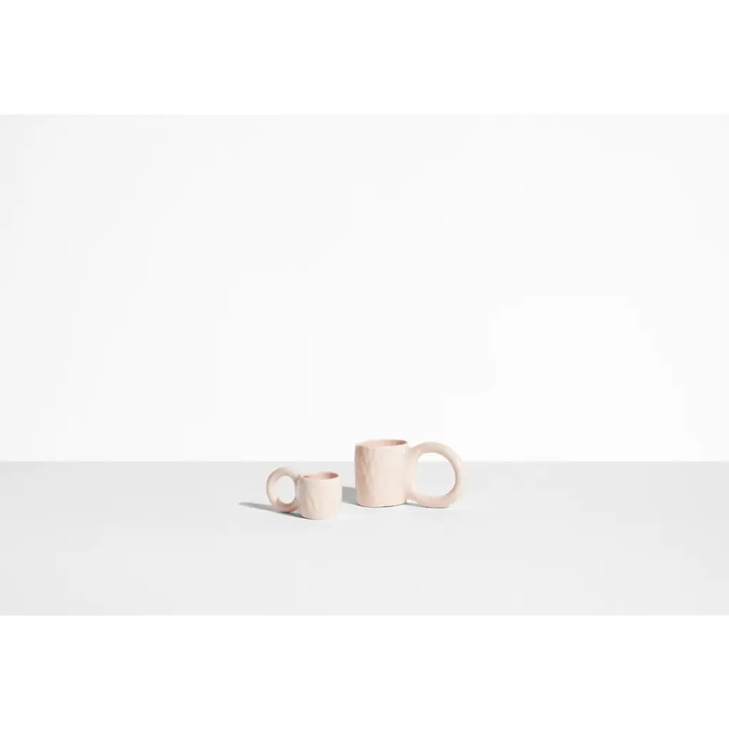 The Donut espresso cups by Petire Friture boast a delightfully amusing form combining an XL handle with an organic, irregular body and lip. Created by Pia Chevalier, the design is inspired by baked goods: the cups’ oversized handles look like delicious, glazed doughnuts. These cups are sure to spark conversations whether at the breakfast table or when you whip them out at the end of a meal! The Donut cup is made in Portugal using molds that, together with the distinctive glaze, give the cups an artisanal look. Despite their almost handmade feel, the cups are dishwasher and microwave safe.
