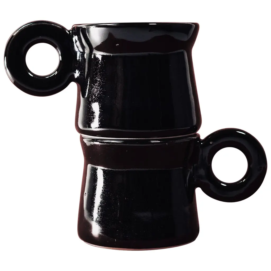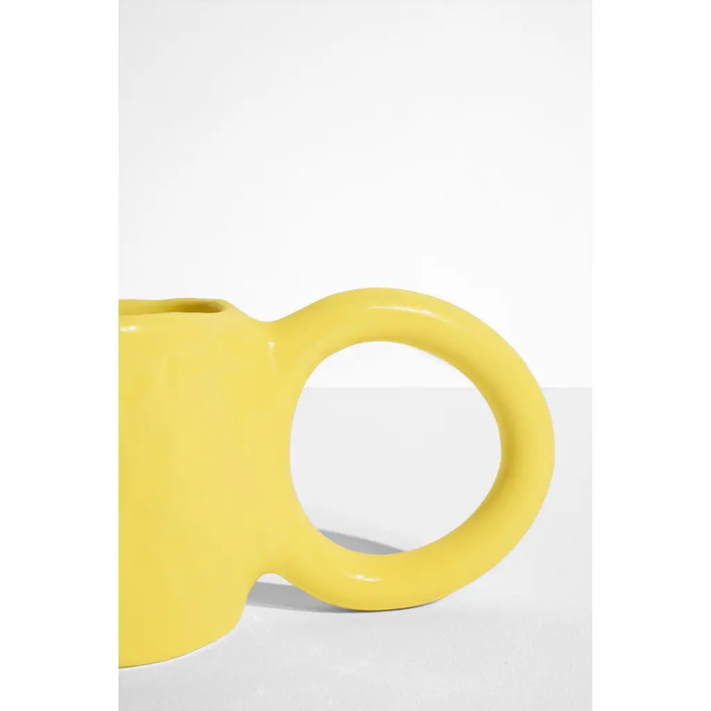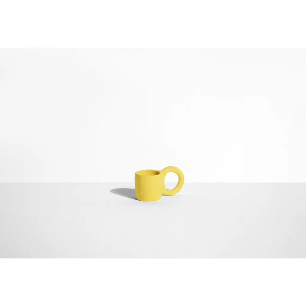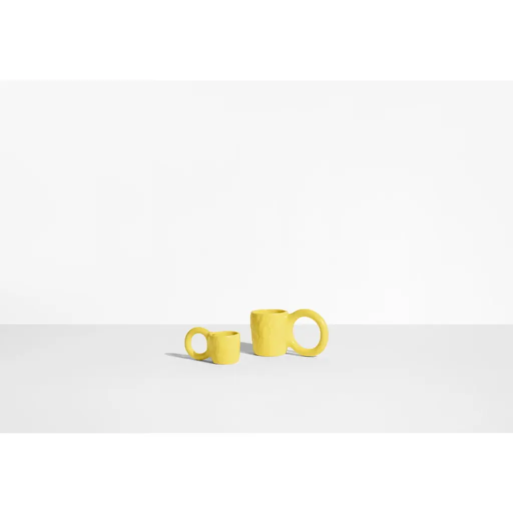 The Donut espresso cups by Petire Friture boast a delightfully amusing form combining an XL handle with an organic, irregular body and lip. Created by Pia Chevalier, the design is inspired by baked goods: the cups’ oversized handles look like delicious, glazed doughnuts. These cups are sure to spark conversations whether at the breakfast table or when you whip them out at the end of a meal! The Donut cup is made in Portugal using molds that, together with the distinctive glaze, give the cups an artisanal look. Despite their almost handmade feel, the cups are dishwasher and microwave safe.