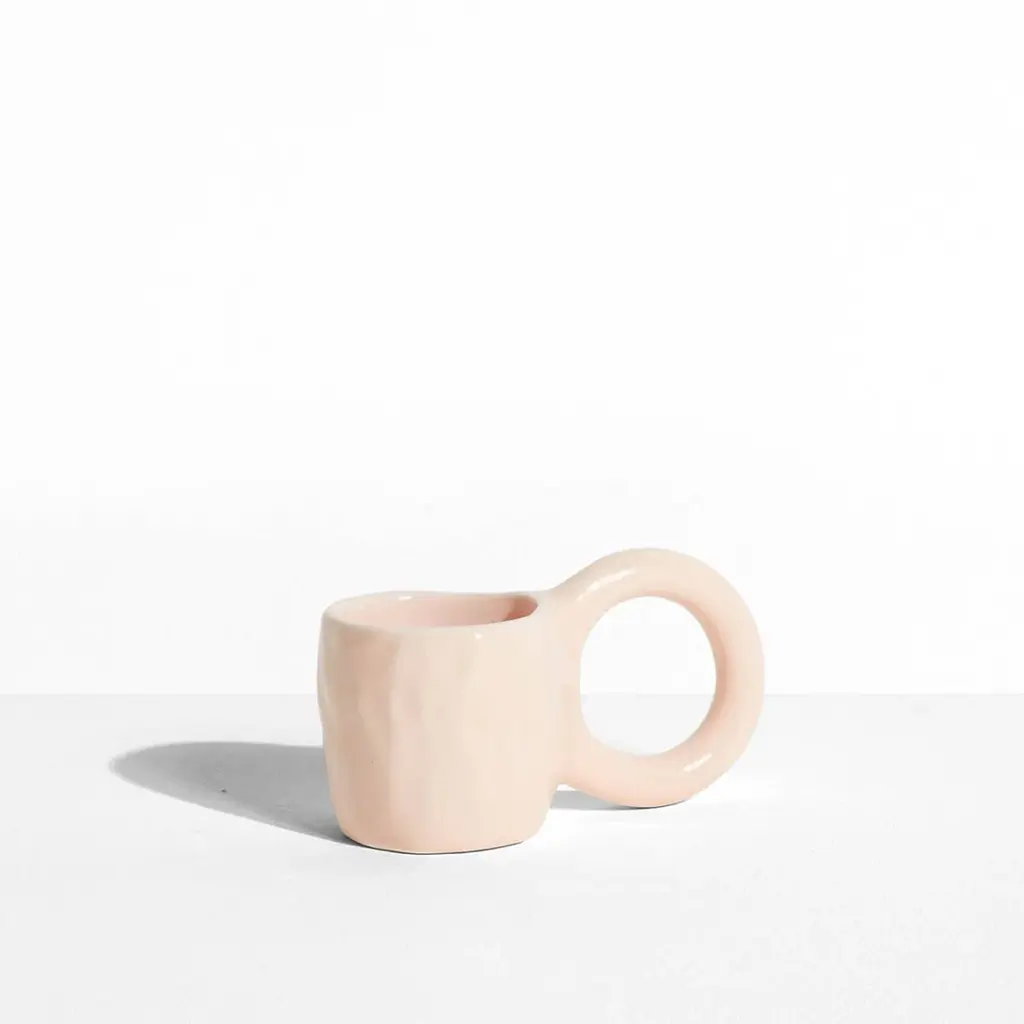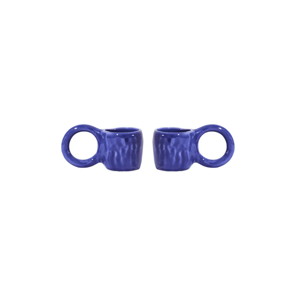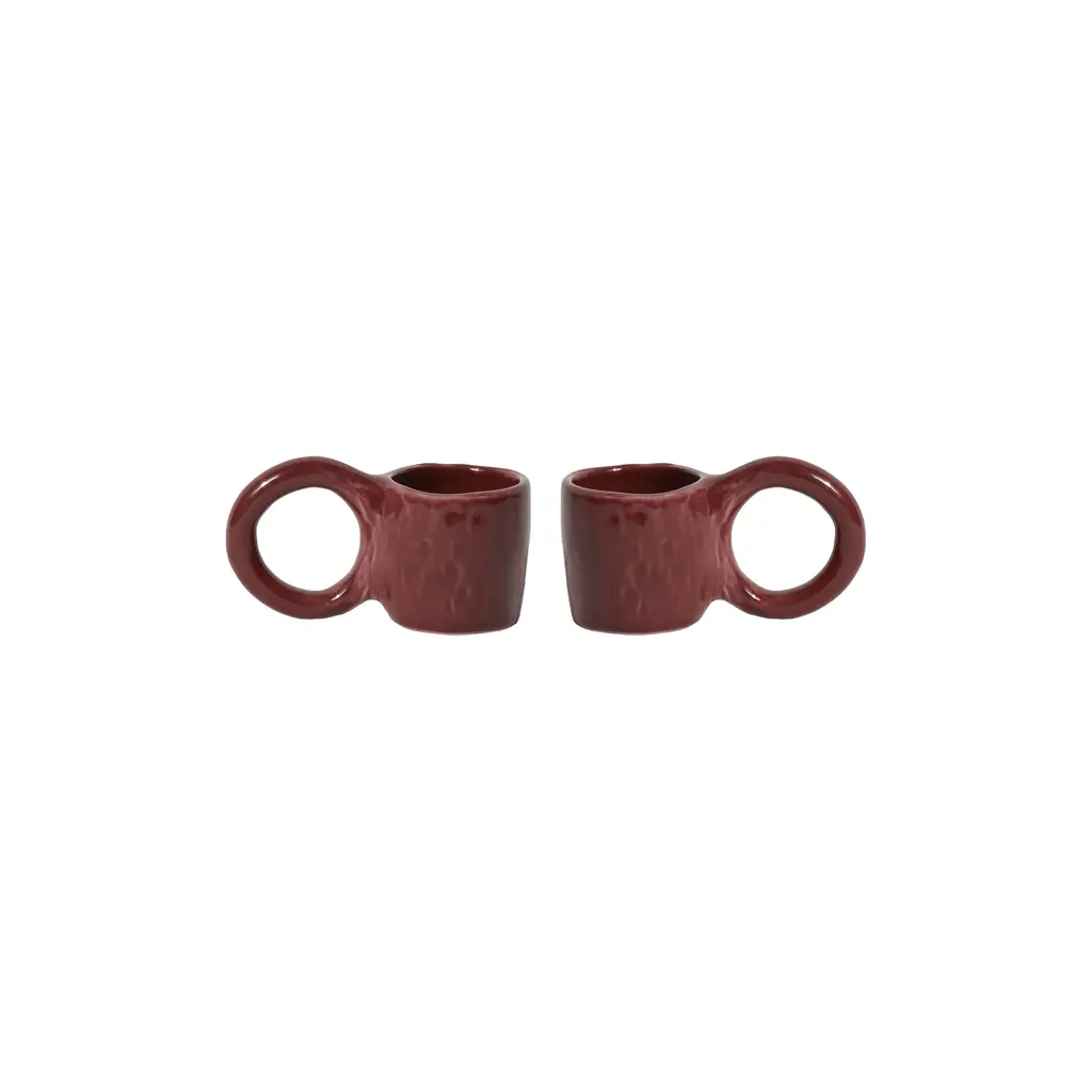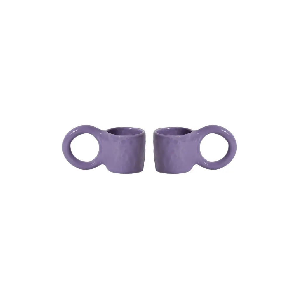 Enjoy your favorite morning or afternoon espresso from the Donut Espresso Cup, designed by ceramic artist Pia Chevalier for Petite Friture. Inspired by the world of baking, these cups feature signature, oversized handles that mimic doughnut pastry, and an enamel finish for a sugar-glazed look. Standing out for their handcrafted appearance, this set is perfect for gifting. Highlights