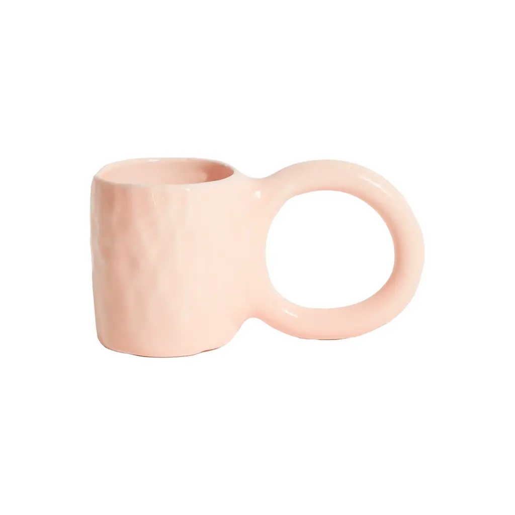 Drawing her inspiration from the world of baking, designer Pia Chevalier imagined her mugs as a collection of sweet treats. The oversized handle emulates the shape of a doughnut, and the enamel finish gives the piece a sugar-glazed coating look. The Pistachio mug is available exclusively on our website. Made in Portugal, the design of these ceramic mugs is grounded in craftsmanship. The hand-produced enameling makes each piece unique. The thick texture echoes the voluptuousness of a doughnut, and the mug’s volume offers a generous 8cm-high countenance for tea, coffee, and other beverages. Features