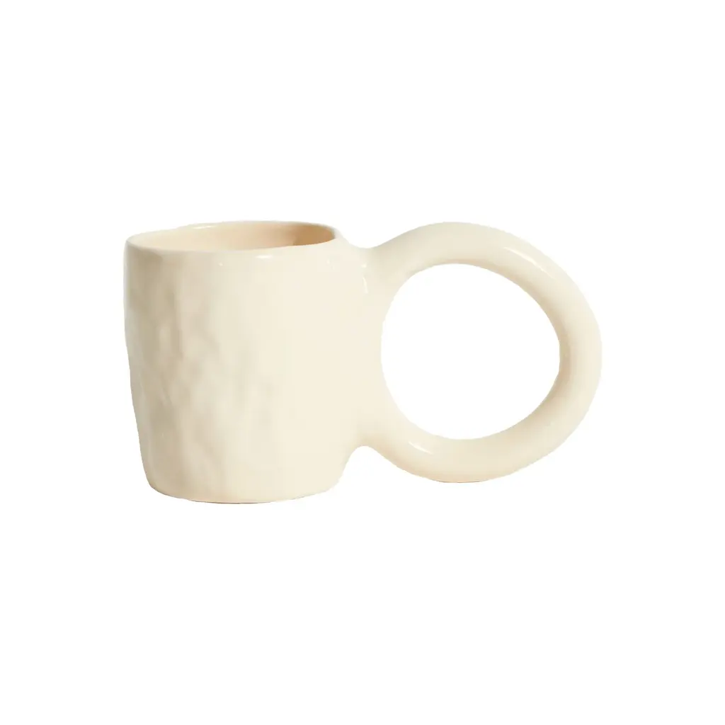 Drawing her inspiration from the world of baking, designer Pia Chevalier imagined her mugs as a collection of sweet treats. The oversized handle emulates the shape of a doughnut, and the enamel finish gives the piece a sugar-glazed coating look. The Pistachio mug is available exclusively on our website. Made in Portugal, the design of these ceramic mugs is grounded in craftsmanship. The hand-produced enameling makes each piece unique. The thick texture echoes the voluptuousness of a doughnut, and the mug’s volume offers a generous 8cm-high countenance for tea, coffee, and other beverages. Features