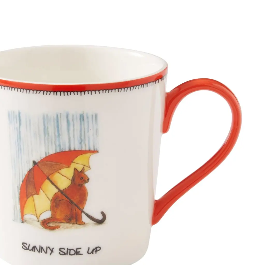 Make their day with this charming mug from the Doodles collection. Designed by Willow Kemp, this fine china mug features a vibrant painted drawing of a cat sitting under an umbrella avoiding the rain with the phrase, ‘Sunny Side Up’. Full of color, this mug will make them smile with every use. Perfect for enjoying their morning coffee. Presented in a colourful gift box, send your love with this beautiful mug.
